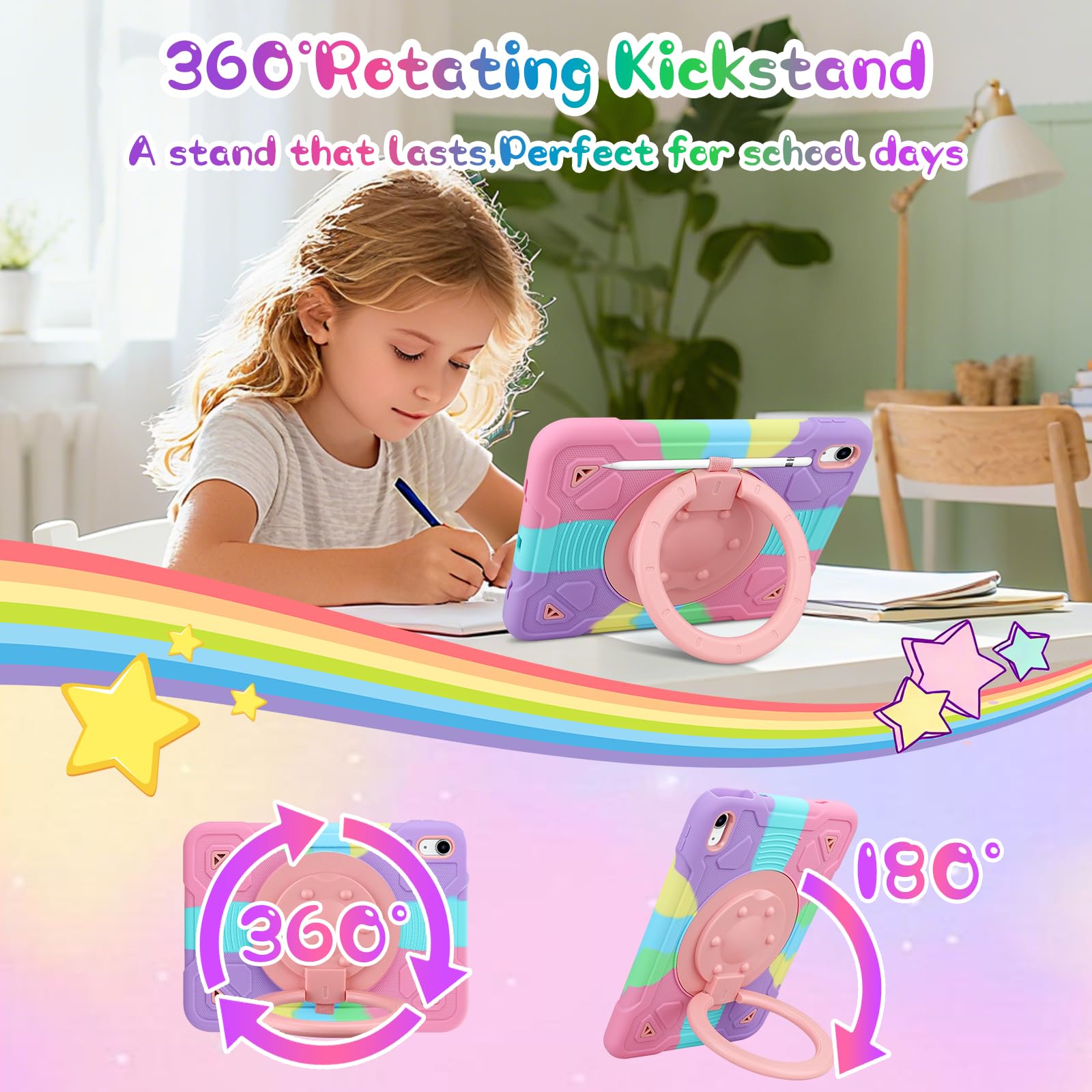 kickstand providing a 180° viewing angle