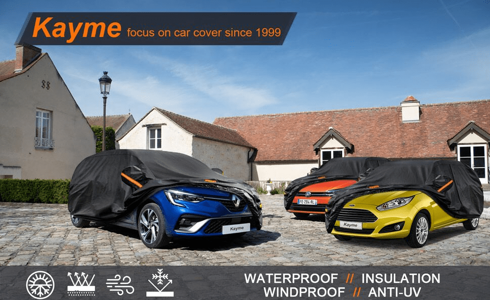 - 【Complete Protection】- Kayme thickened cover is a moving garage, it’s can achieve the effort of Scratch resistant Sun-proof, Windproof, Hailproof, Snow-proof, Dustproof in extreme weather. It provides comprehensive protection for your vehicle.