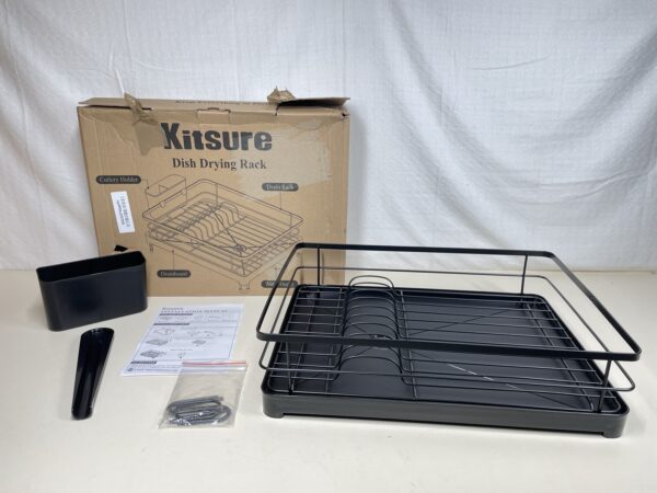 This kItsure Dish Drying Rack is listed as used due to a small crack in one corner of the bottom tray of the rack (pictured). Other than this, the item is in a good condition  showing no other signs of use or damage. The user guide is included as are the feet, which are in a perfect condition. Please see images.