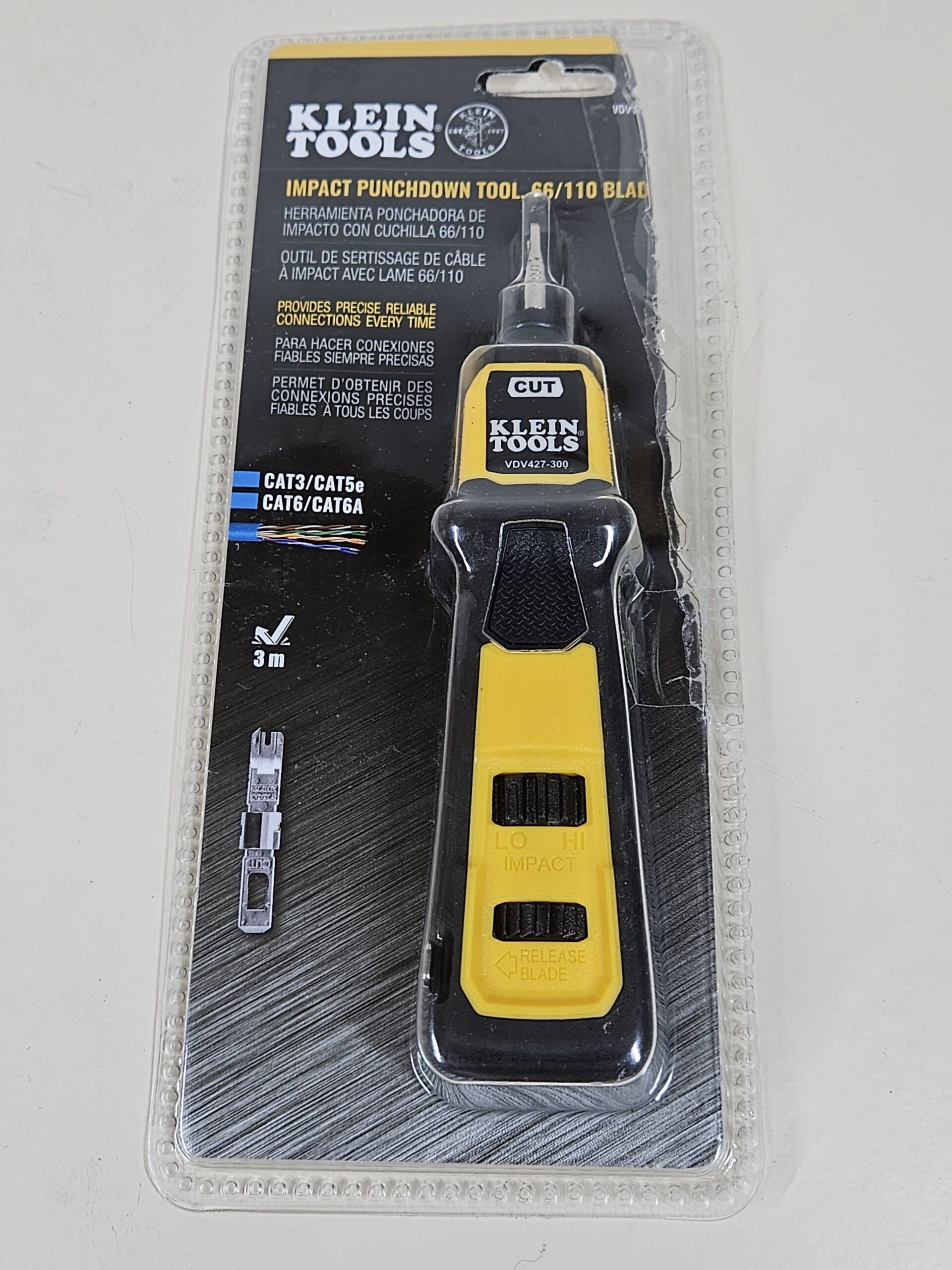 Klein Tools VDV427-300 Impact Punchdown Tool with 66/110 Bit, Reliable CAT Cable Connections, Adjustable Force, Includes Pick and Spudger