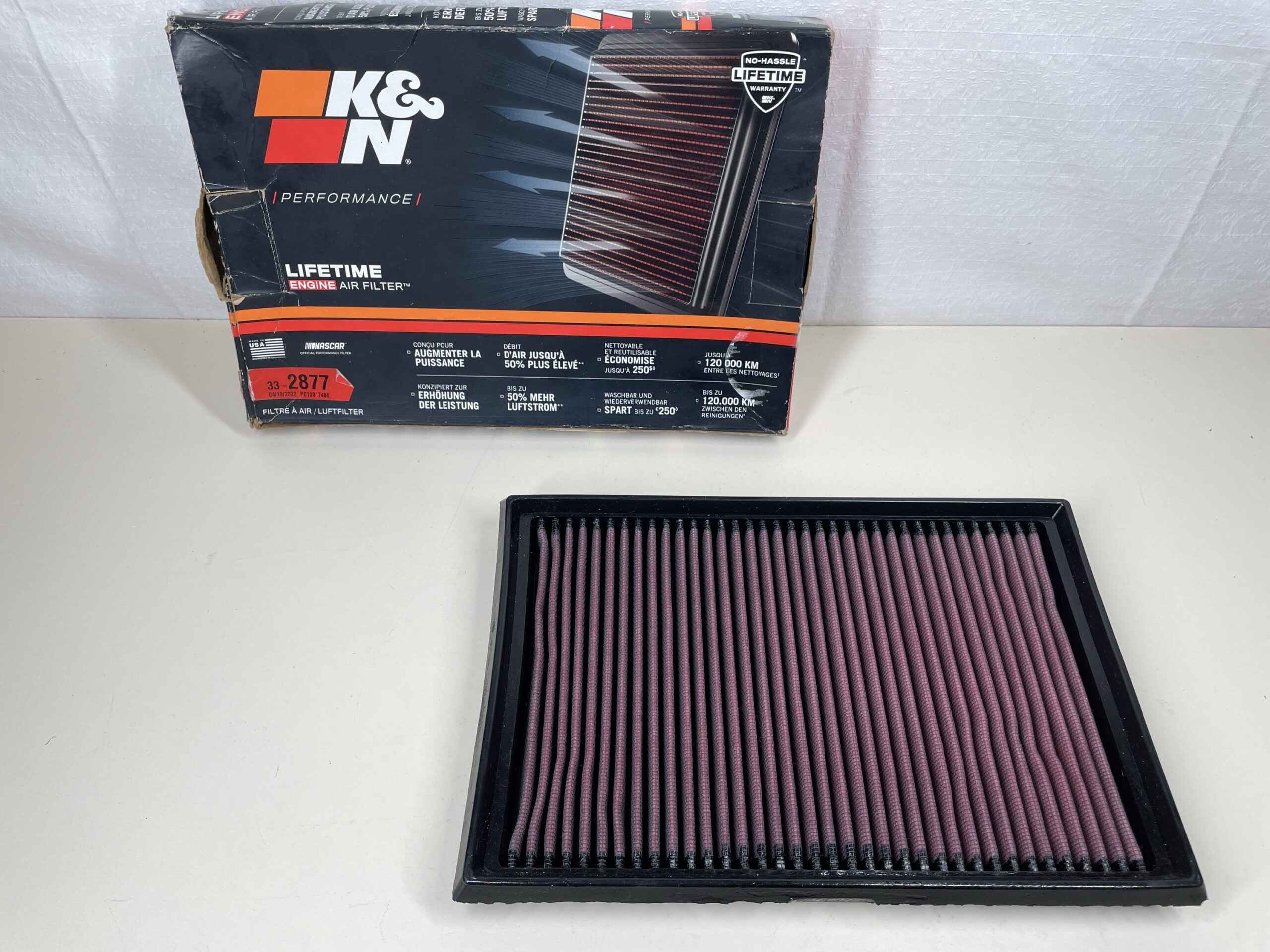 K&N® washable, reusable High-Flow Air Filtersâ„¢ feature a state-of-the-art design of layered, oiled cotton media engineered to improve airflow and capture contaminants, and are designed to provide an increase in horsepower. Each performance air filter is reusable, engineered to last for the entire lifespan of your vehicle, and backed by K&N’s No-Hassle Lifetime Limited Warranty. K&N drop-in replacement filters are designed to install easily into your factory air box. Upgrade today and start enjoying superior airflow and superior performance from K&N’s most popular product!