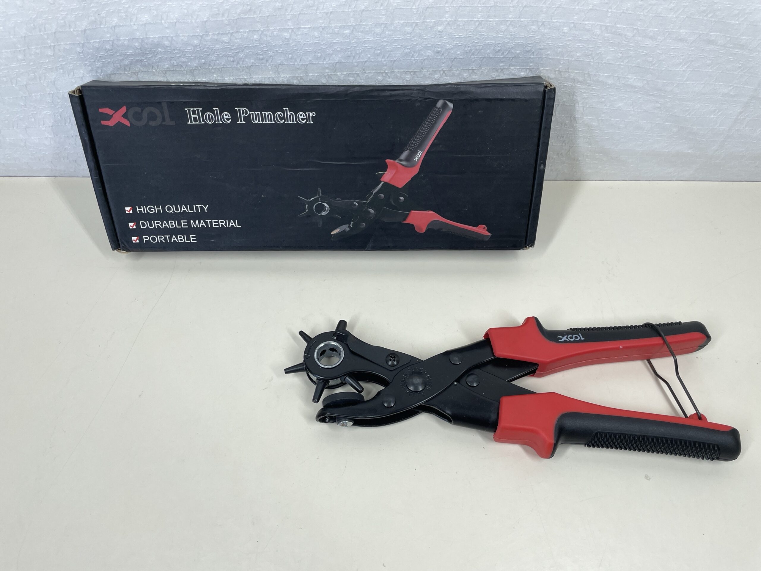 - 【Convenient Storage】 In the bottom of punch plier, there is a stainless buckle. When you don’t work, you can buckle the safe lock. And the punch plier will become small to save your space.