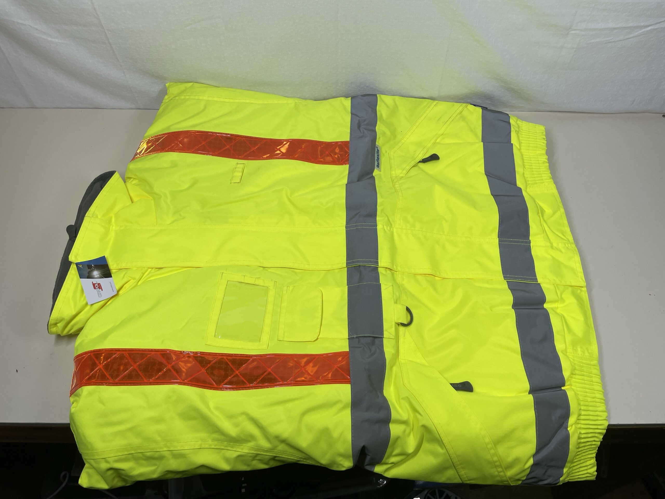 Leo Workwear Portmore Yellow Waterproof Quilt Lined Orange Brace Superior Hi Vis Bomber Jacket – XXL