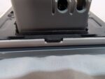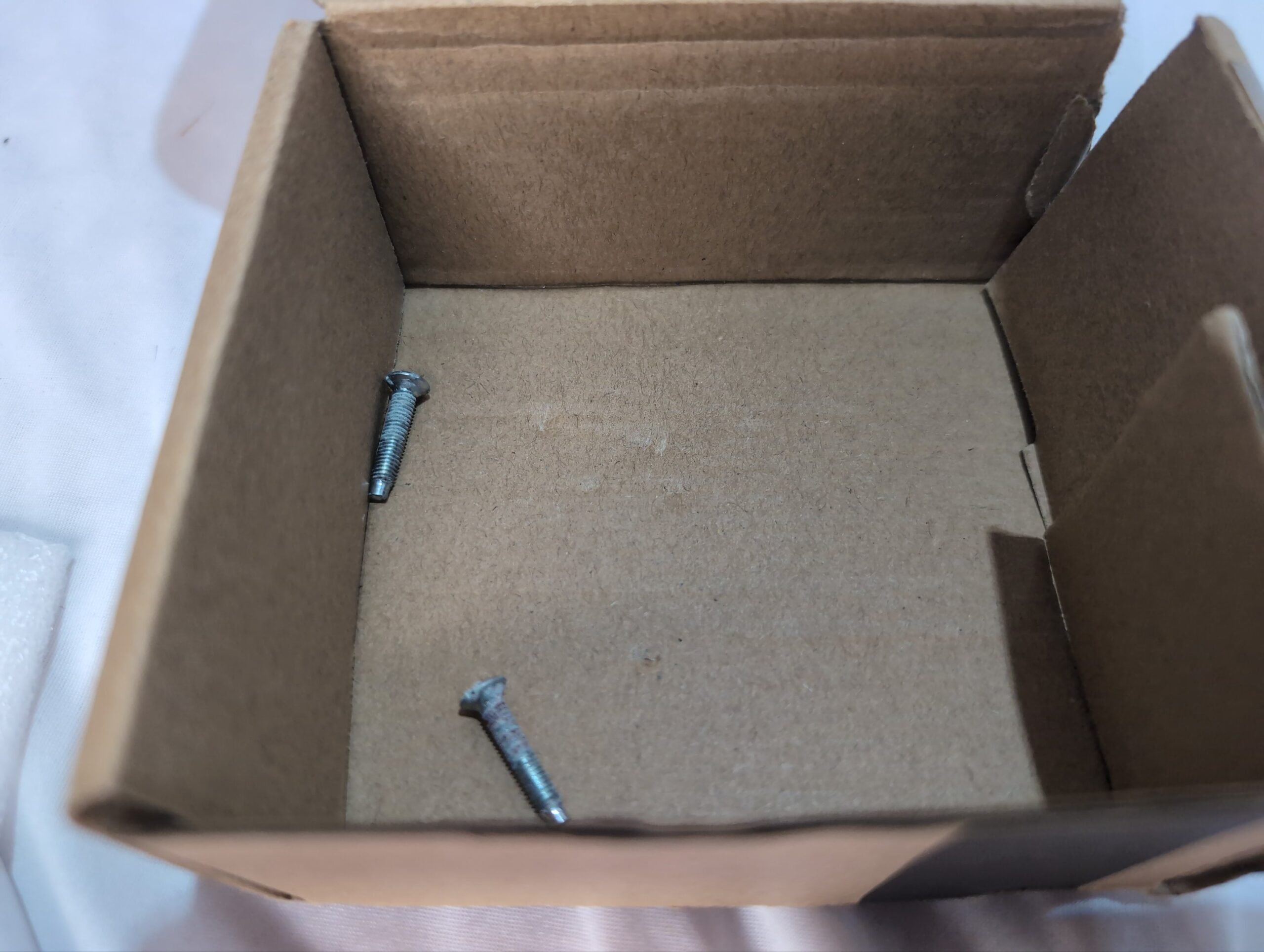 The item seems to have had some use, with a slight dent in the tab to release the glass panel. It is however in good working condition. The mounting screws are slightly oxidized from poor storage