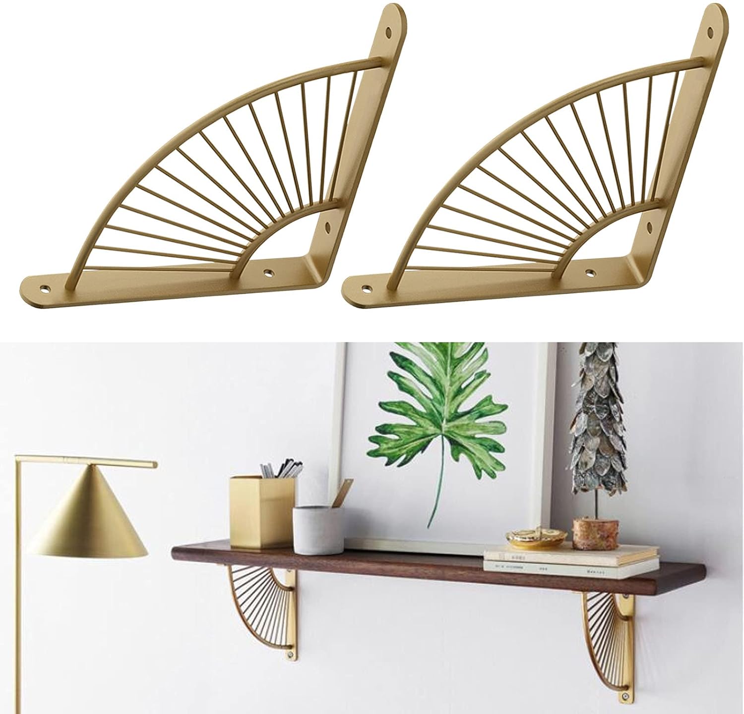 LMYDIDO 2PCS Shelf Brackets, Gold/Black Metal Craft Sector Shelf Brackets, Heavy Duty Home Decoration Storage Shelf Support with Screws (20cm, Gold)