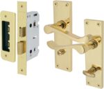- APPLICATION: These handles provide latching for internal doors where privacy locking is required. They are used with a bathroom door lock which is included to allow opening and closing of the doors and a thumb operated locking mechanism. This ensures locking of the door whilst inside the toilet/restroom, preventing unwanted access. They are suitable for all types of indoor bathroom wooden doors.
