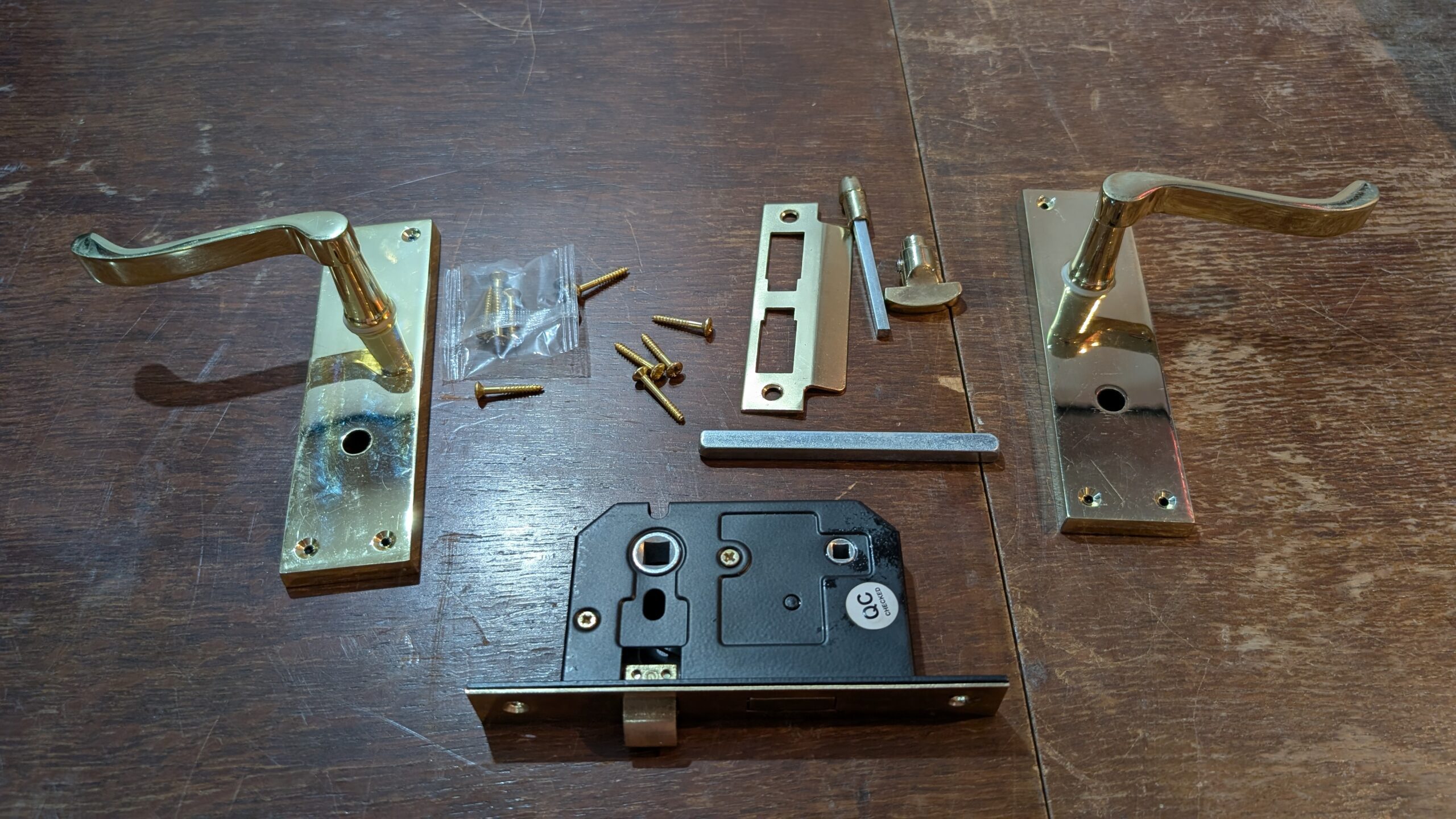 - FIXTURES & FITTINGS: All the necessary fixtures are supplied including the fixing screws and internal handle bar. The mortice bathroom locks are supplied. The spindle can be cut to size according to your liking for ease of installation.