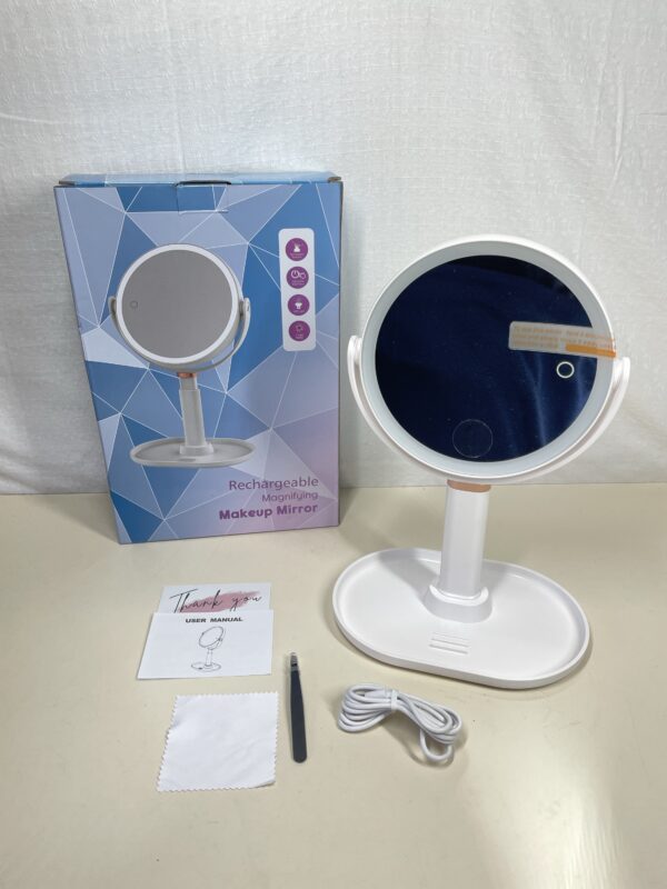 This Double Sided Light Up Magnifying Mirror is listed as new other as the packaging has been opened but the set is all included and in a pristine condition. The mirror’s touch sensors and lighting have been tested and are working perfectly. Please see images.
