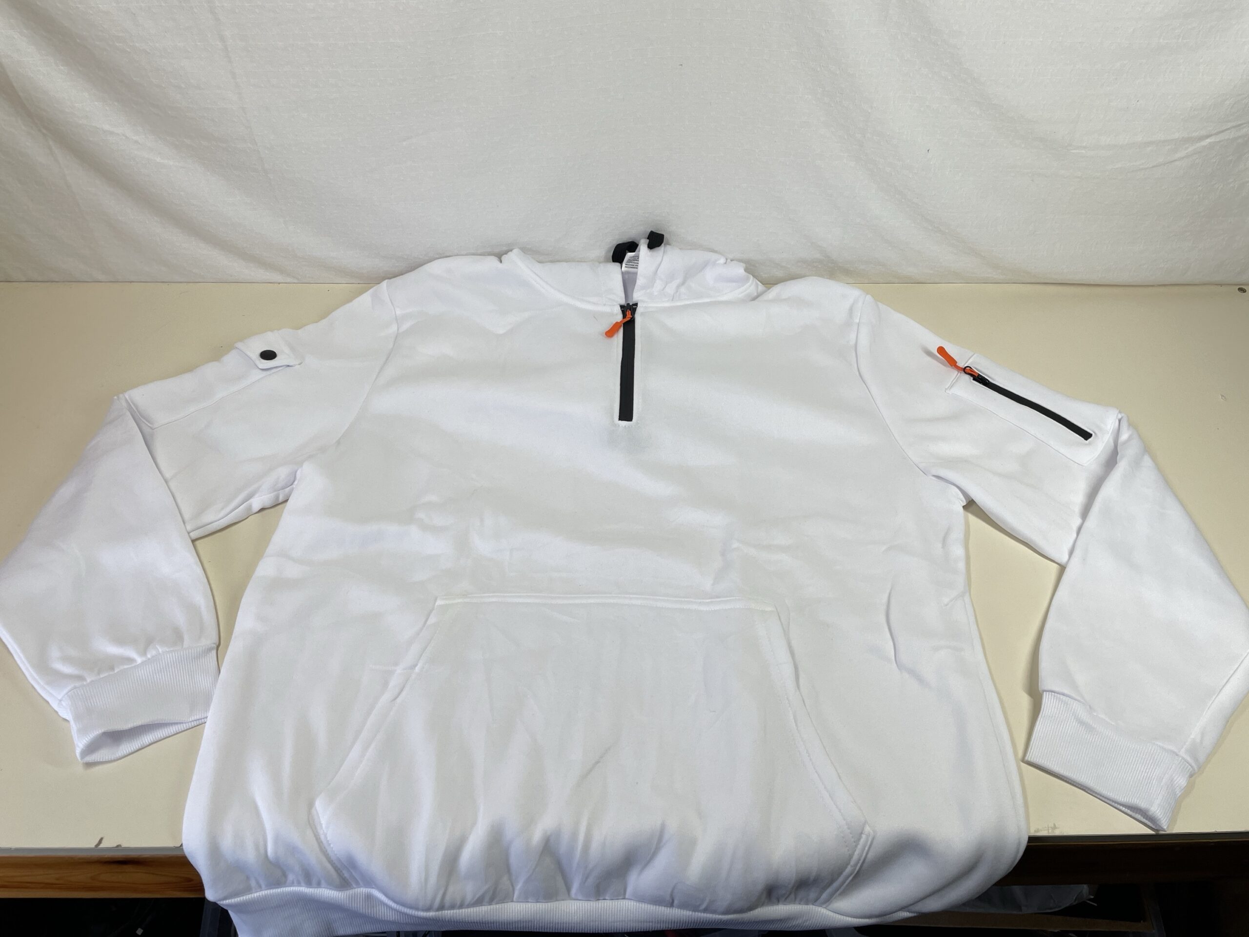 MakingDa Men's Quarter Zip Pullover Hoodie – White, XL