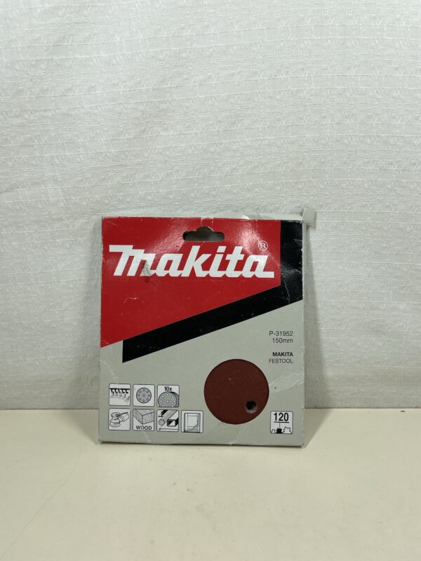 This pack of 10 Makita 120 Grit Abrasive Sanding Discs are listed as new other as the boxing has been slightly damaged and opened, but the full set of discs are inside and in a pristine condition. Please see images.
