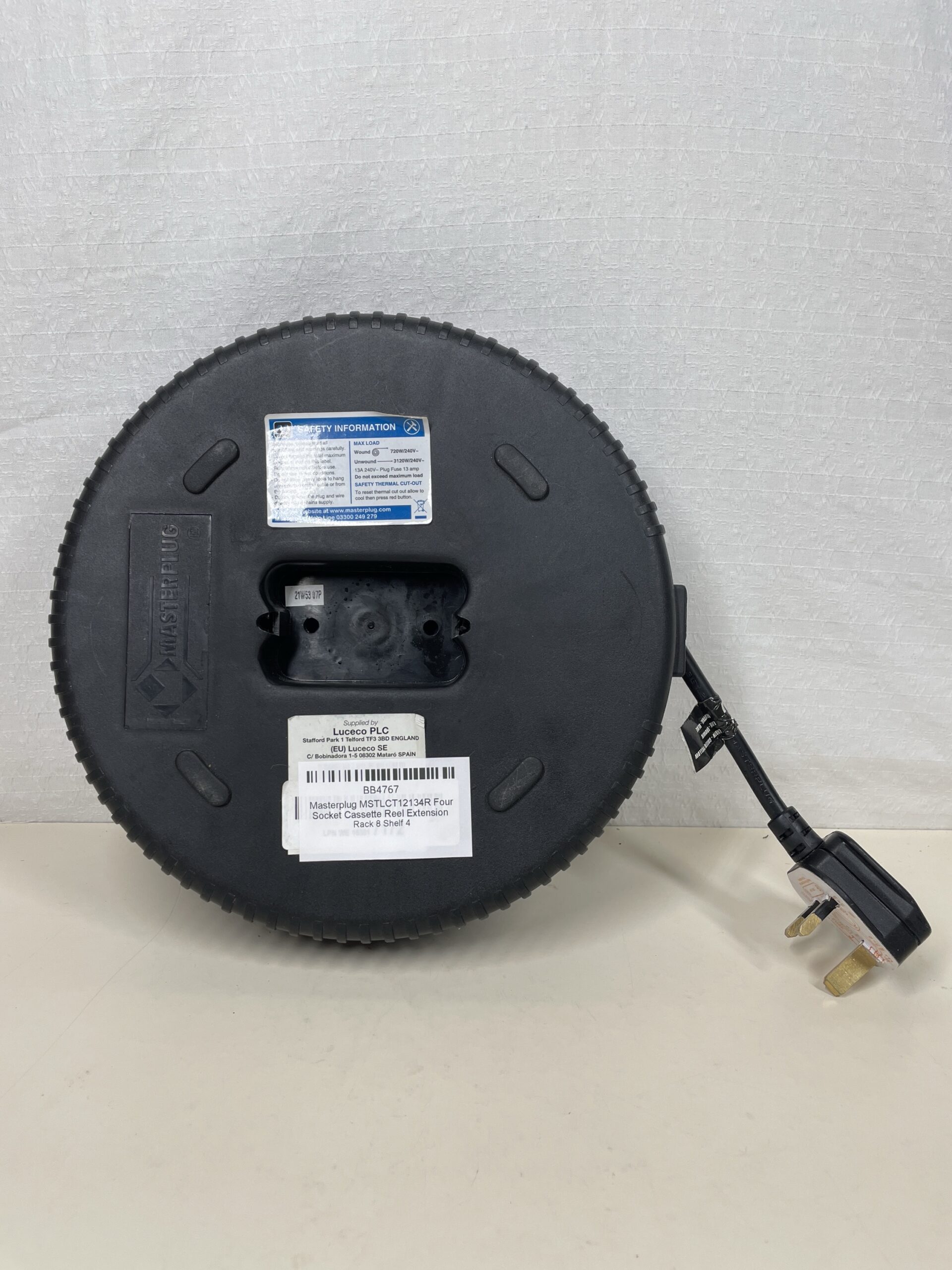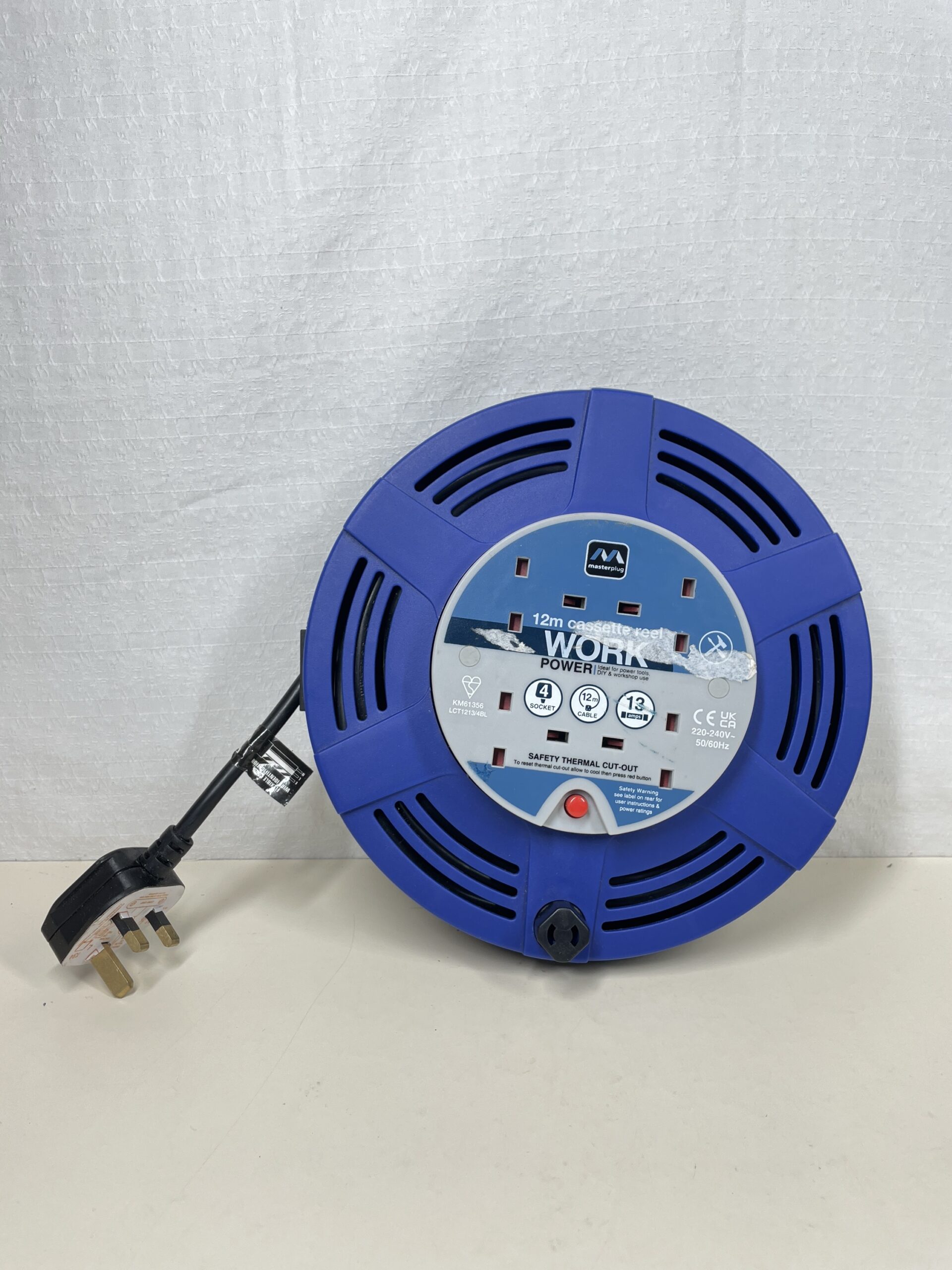 This Masterplug 12m Four Socket Extension Reel Lead is listed as used due only to the cosmetic damages on it’s front face. Other than this the lead is in a great condition, has been fully tested and is working perfectly. Please see images.