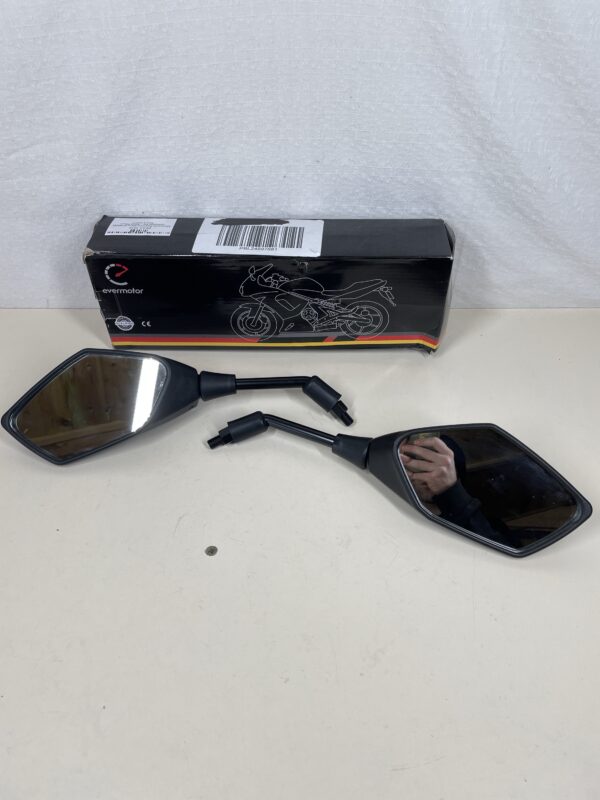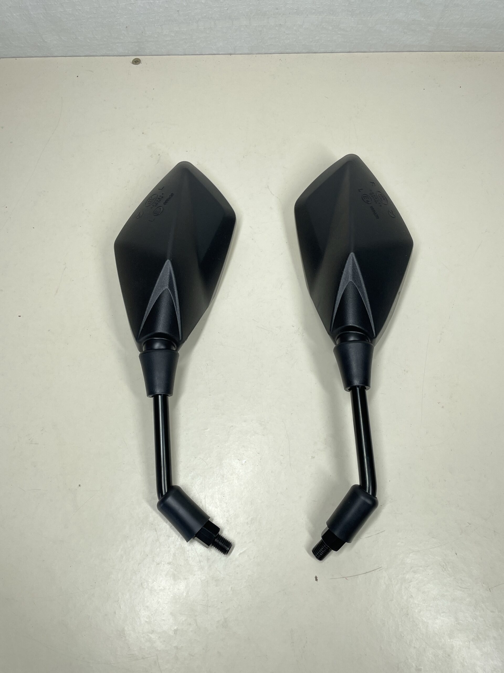 This pair of Black Rhombus Motorcycle Rearview Mirrors is listed as used due only to the fact that it is missing it’s additional M-bolts. The mirrors themselves however are in a great condition, showing no signs of actual use or damages. Please see images.
