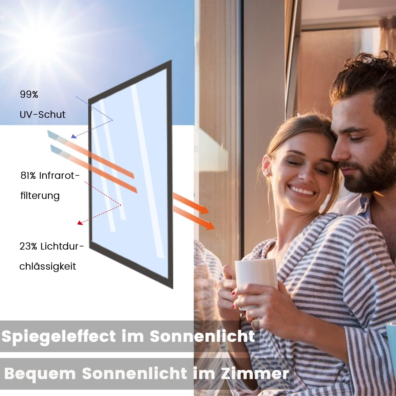 - Privacy protection during the day: when outdoor light is brighter than indoors, mirror film can protect the privacy of indoor rooms during the day, at the same time you can look outside as usual.