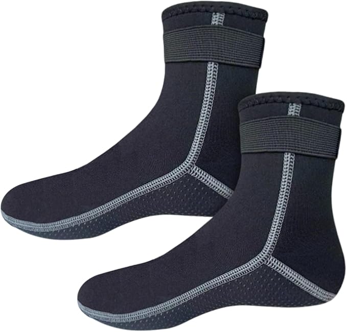 - Stretchy Elastic Design – The 3mm neoprene socks are designed with an elastic band around the cuff, so you can adjust the tightness as needed to keep sand and other small things out without worrying about the socks slipping off