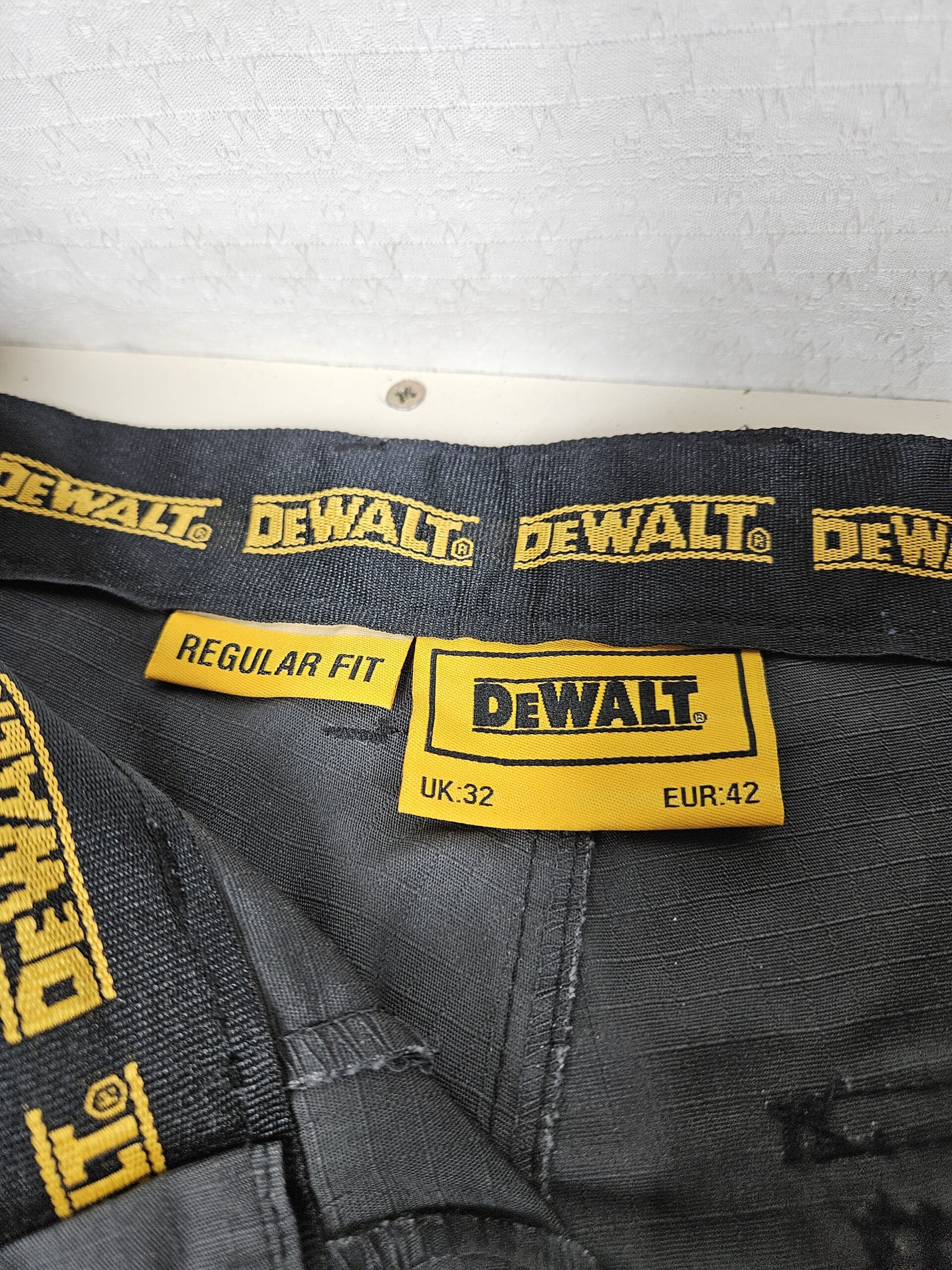 The DEWALT Cheverley Shorts have a durable, rip-stop fabric base, double folded hem and double stitched seams for increased durability and wear. Fitted with a zip fly and top button. It features a variety of reinforced holster, cargo and back pockets. There is also several holster style pockets, enabling you to keep in use tools close to hand. Material Composition: 65% Polyester, 35% Rip-Stop Cotton. 1 x Pair of DEWALT Cheverley Lightweight Grey Polycotton Shorts Waist 42in