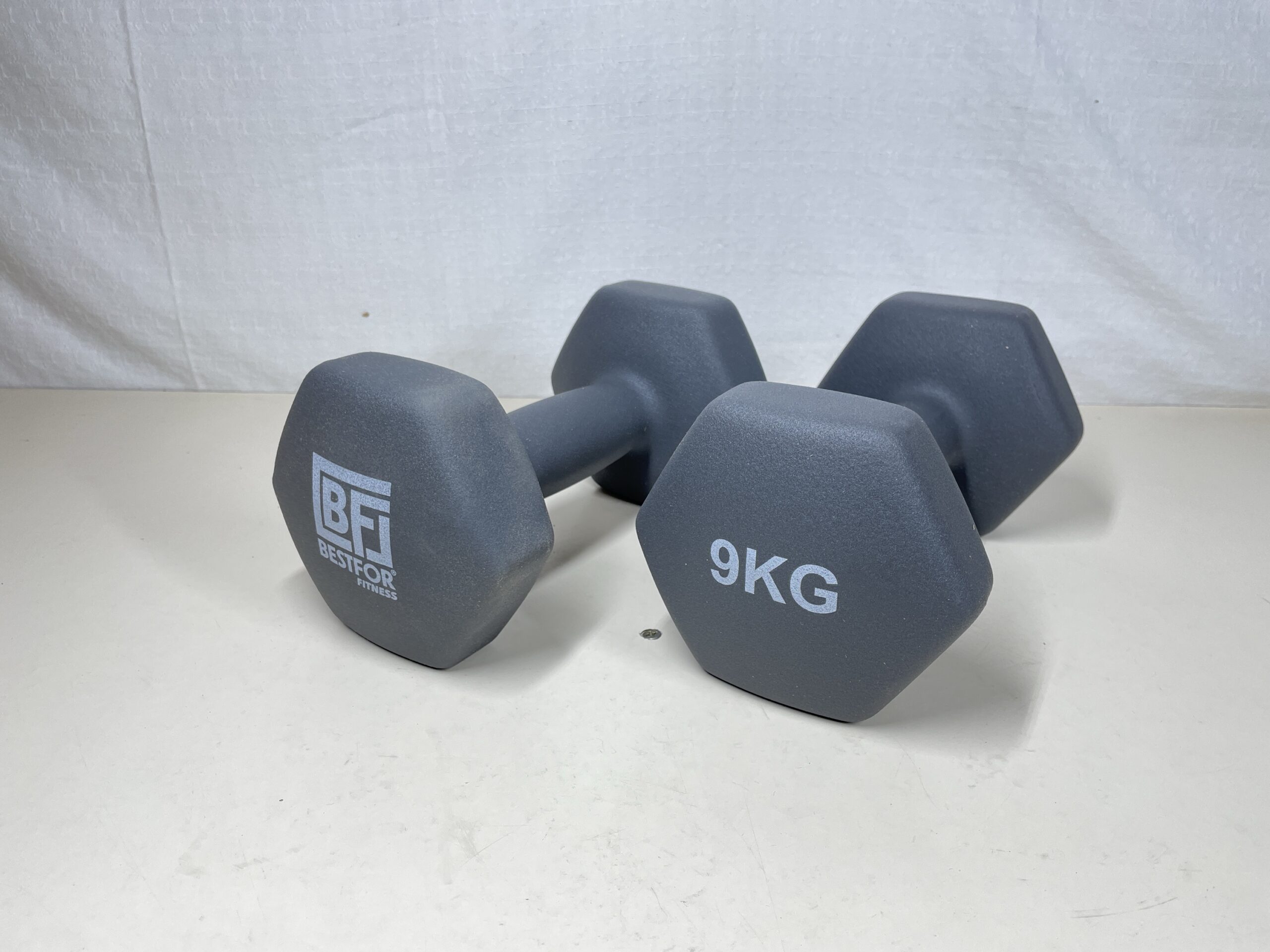 -24%This pair of 9Kg Neoprene non slip Hex Dumbells are listed as new other as their packaging has been opened and slightly damaged, but the dumbbells themselves are in a perfect condition, showing no signs of previous use or damage at all. Please see images.