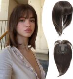 Peonymebeauty 4″X5″ Fringe Hair Topper Clip in Base, 3D Cover Bangs for Thinning Hair Women 12 Inch Synthetic Fiber Natural Straight Short Bob Hairpieces Add Volume Wiglets Ladies(Chocolate Brown)