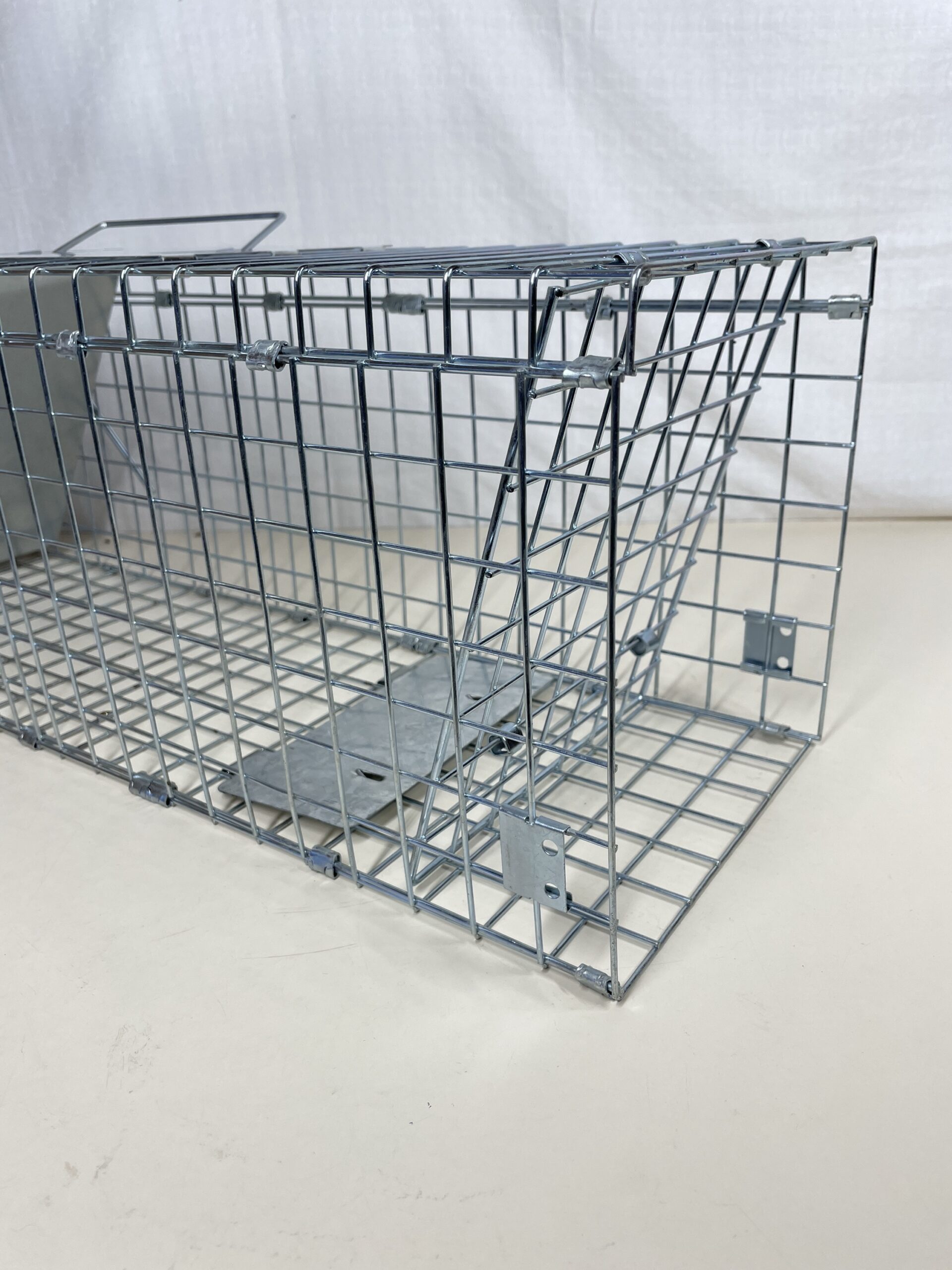 Multi-purpose medium cage trap Suitable for Squirrels, Mink, Vermin, etc. unwanted catches can easily be released without harm The trap is easy to set and once the door falls has a locking device which makes it impossible for the pest to escape. The traps come flat packed and is assembled very easily within minutes, full instructions supplied Can be folded away easily to save on storage. All metal construction fully zinc plated. 61cm x 21cm x 18cm (24″ x 8″ x 7″) Opening rear door for ease of removal Carrying handle. This is a quality item which will last years.