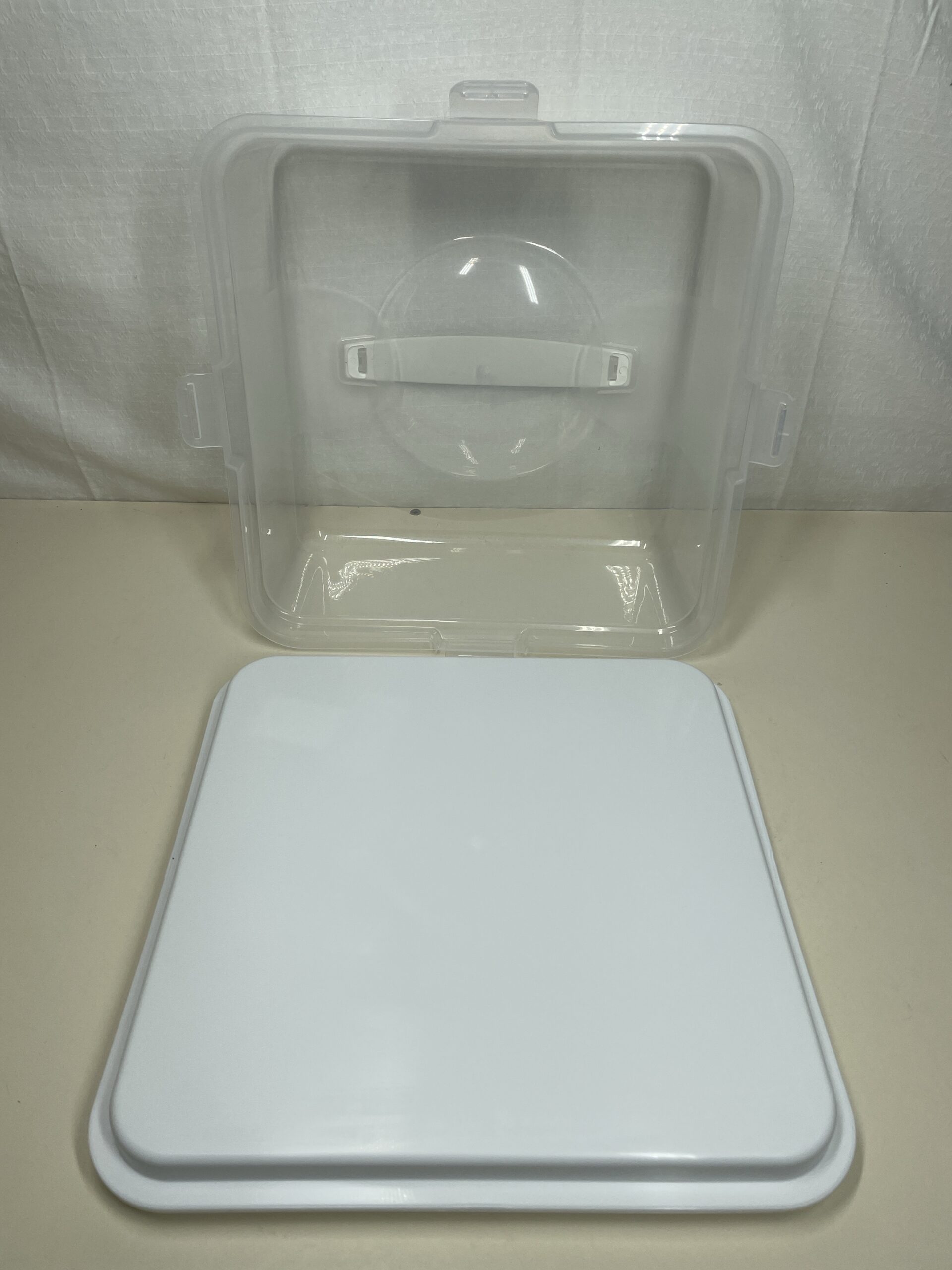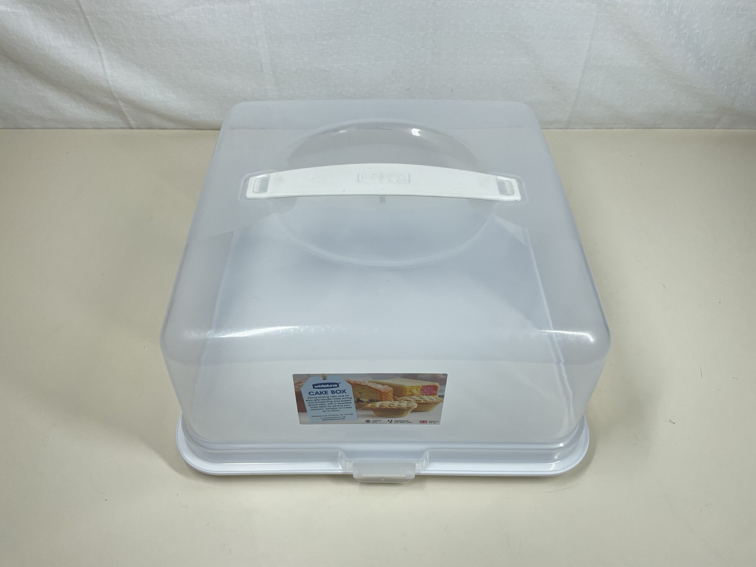 Plastic Whitefurze Cake Box with Locking Clips, Handle and Flip Base for Serving Holds Cakes Up to 30cm (1, Square)