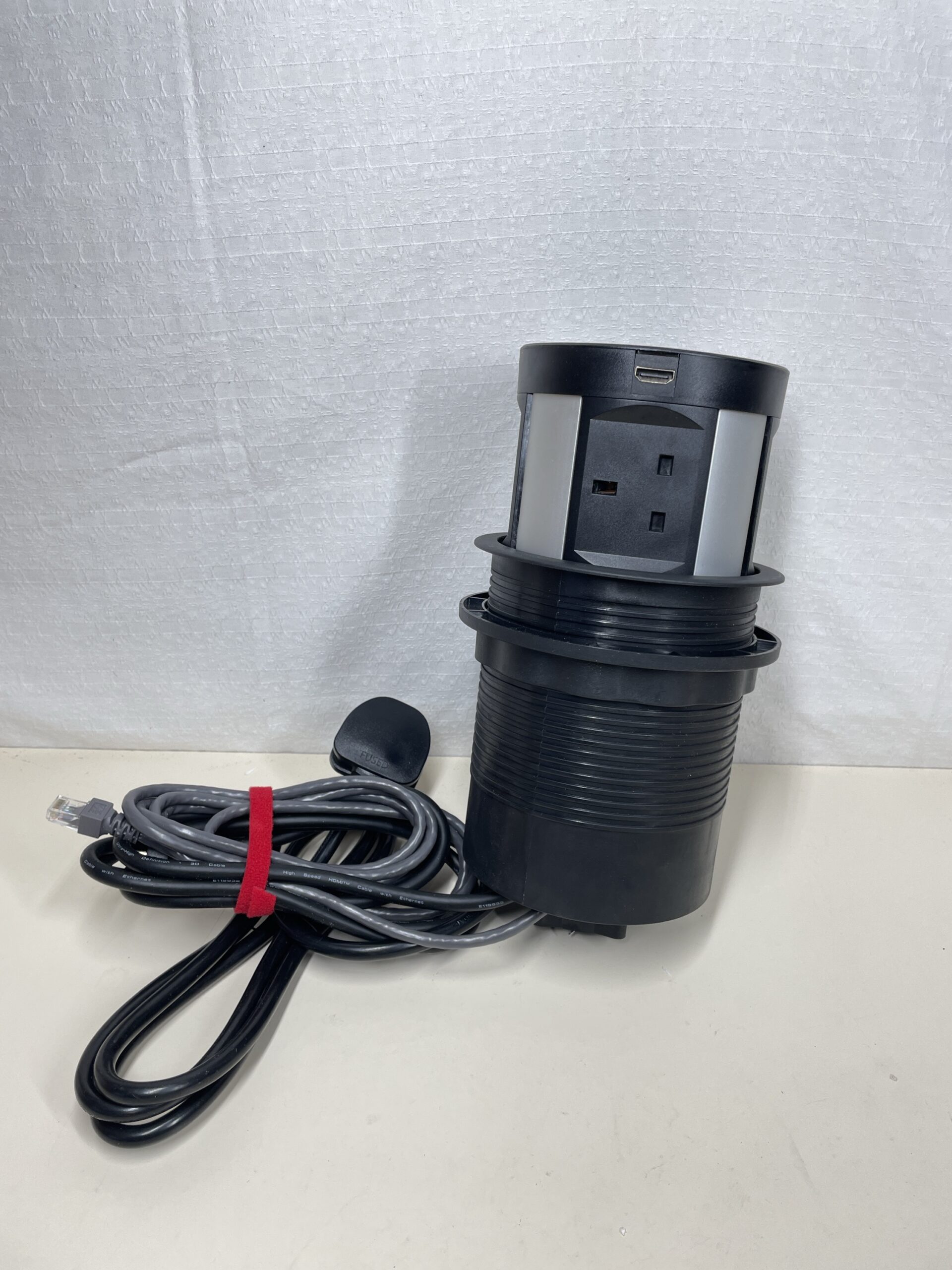 - 【Easy to Install and Use】- Cut out a 120mm/4.7” hole, remove the ring and slide the body from top, screw the ring tight from bottom. No More Clutter, with no messy cables going around. Power cable length: 4.90”/1.5M, HDMI cable length: 5.60”/1.7M, RJ 45 cable length: 5.3”/1.6M. Simply pop up and push down when use or not use.