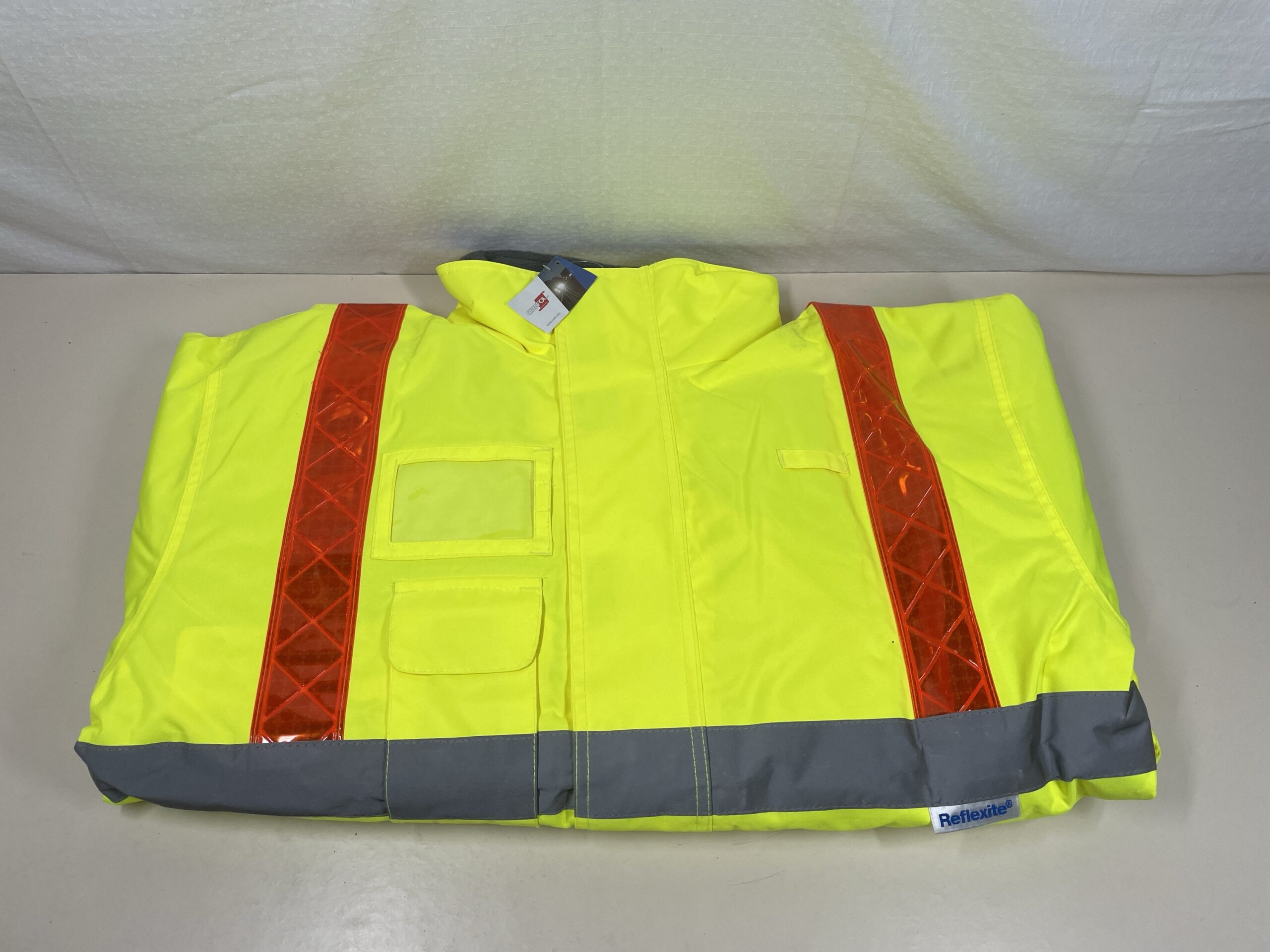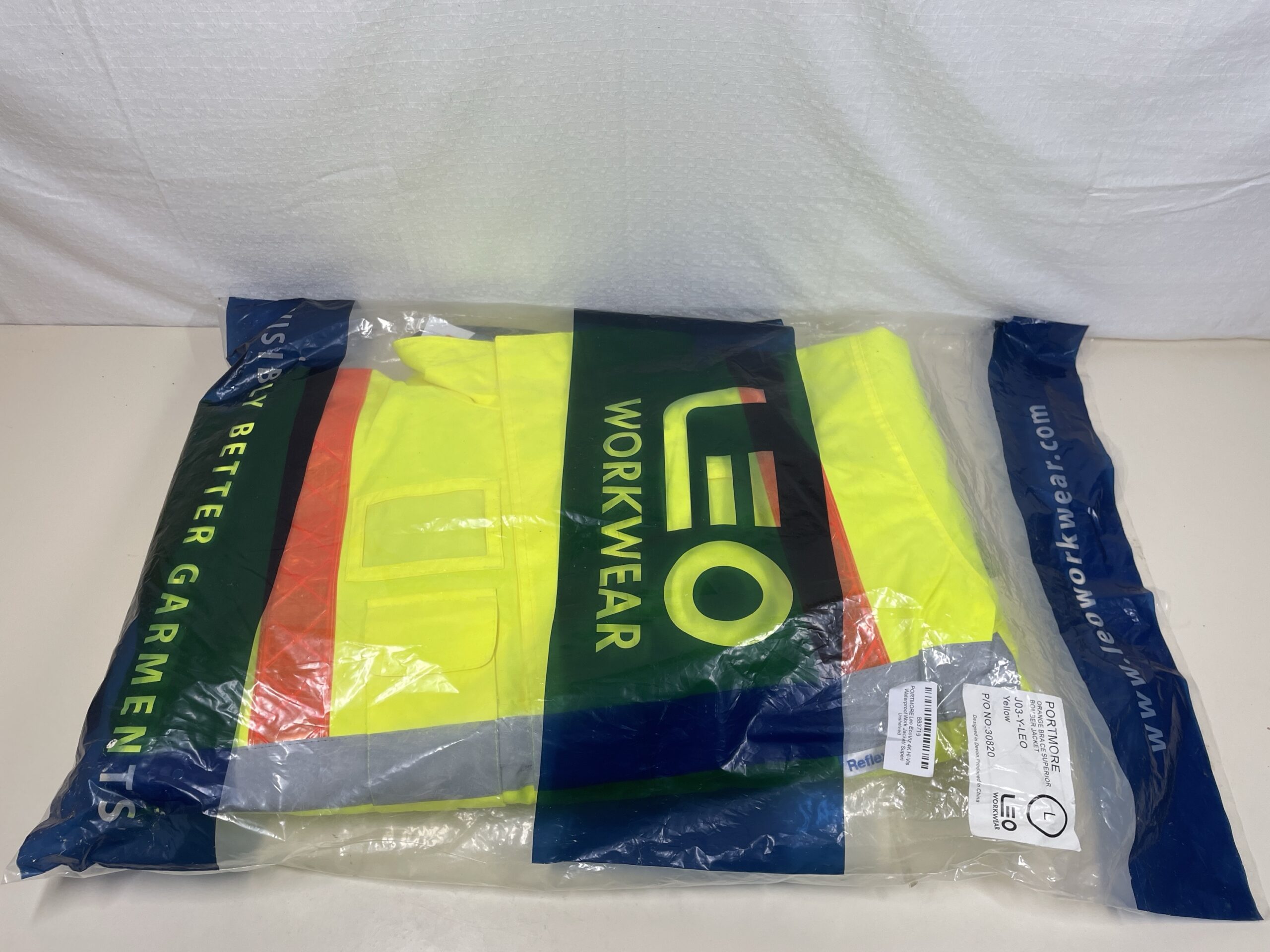 PORTMORE Leo EcoViz 4K Hi-Vis Waterproof Work Jacket/ Superior Baffle Lined Bomber Jacket with Red Braces – Large