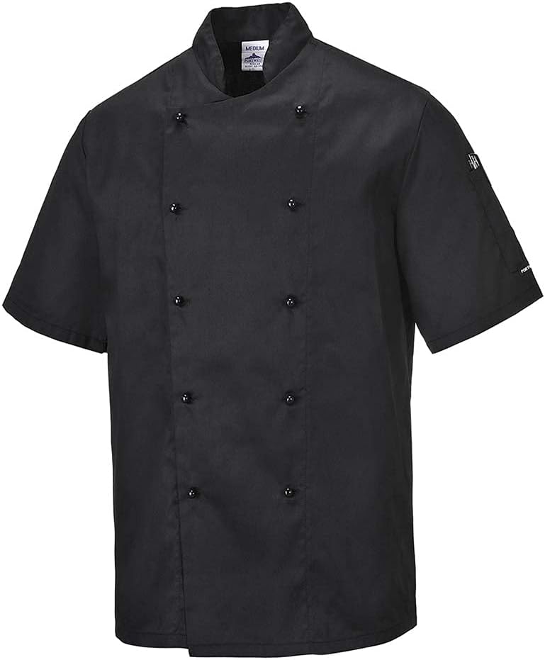 Portwest C734 Mens Whites Chefs Coat Short Sleeve Black, X-Large