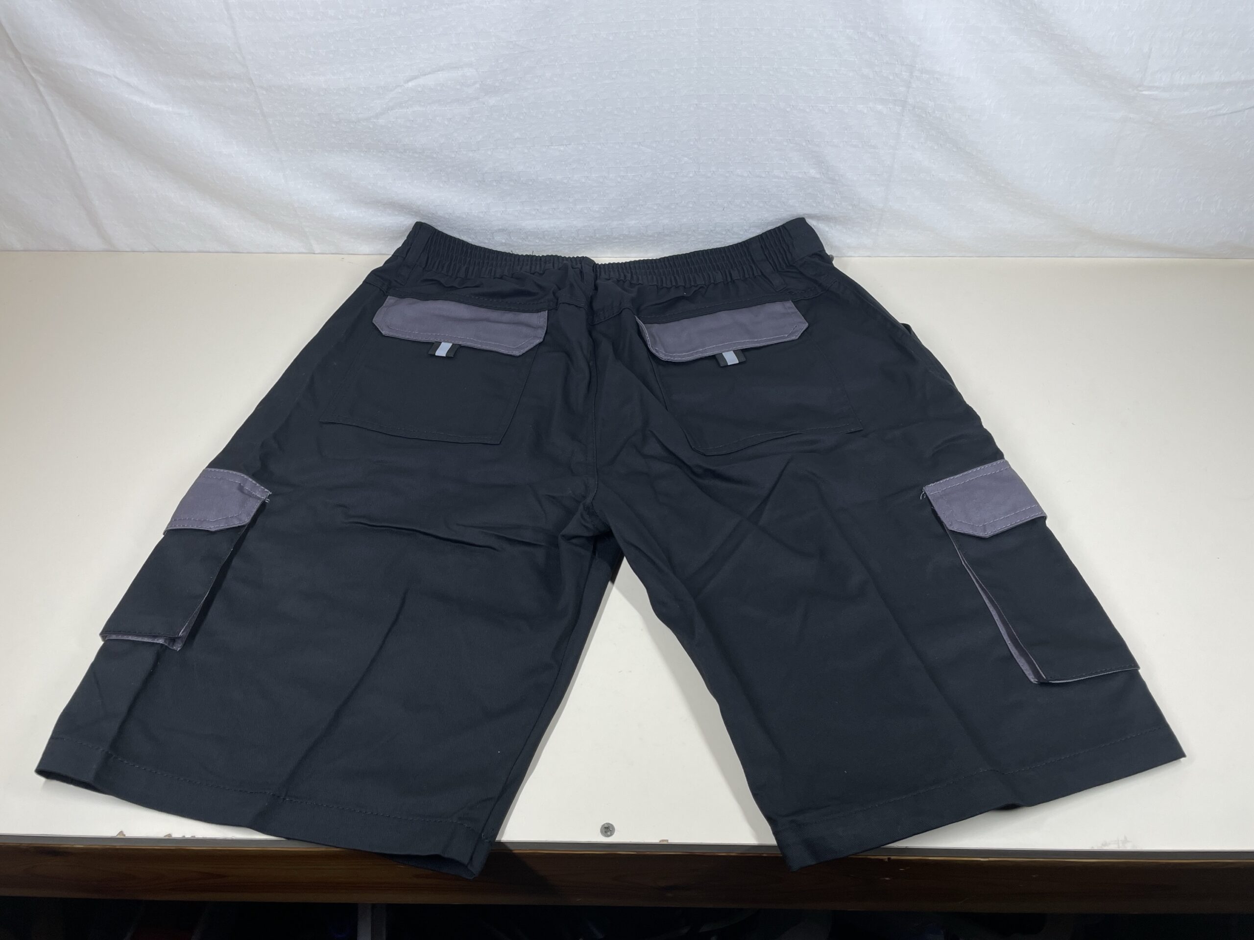 Portwest TX14 Texo Contrast Work Shorts 7 Pocket Multi Function Utility Breathable Summer Workwear Durable Safety Sitewear with Elastic Waist, Black, Large