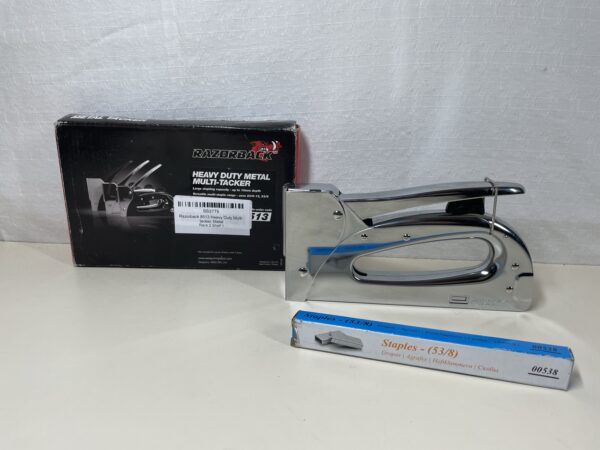 This Razorback 8513 Heavy Duty Staple Gun is listed as used as there are some staples using, but the staple gun itself is in a perfect condition, has been tested and works perfectly. The majority of the staples are included. Please see images.