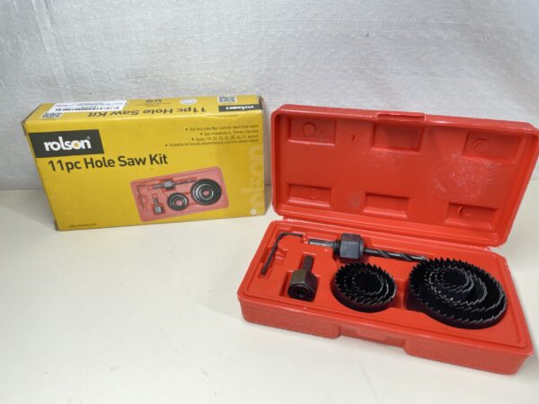 This Rolson 58129 Holesaw Set is listed as used due to one of the blades showing clear signs of drilling (pictured). All other parts are included and in a great condition. The cardboard boxing is slightly damaged but the carry case is in a perfect condition. Please see images.