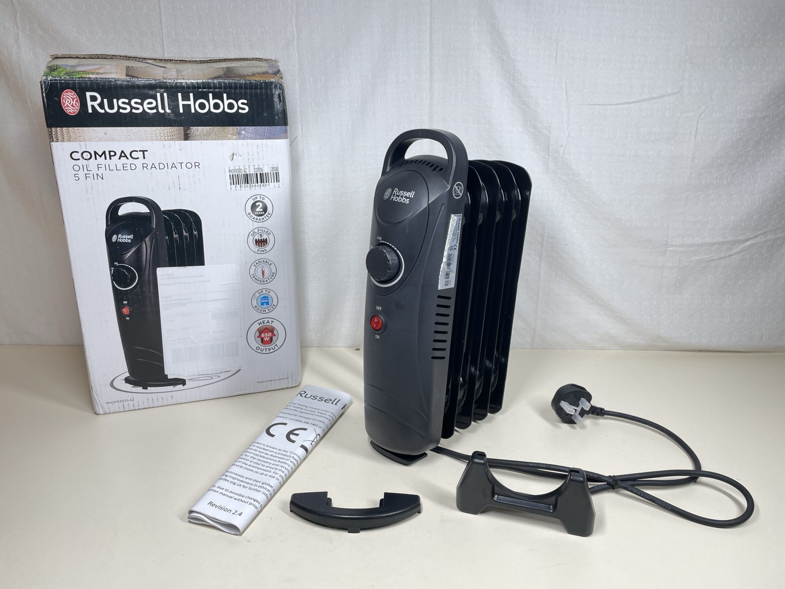 This portable oil filled radiator from Russell Hobbs is the perfect product to warm your home during cold spells and winter months. It features 5 fins for even heat distribution, with a total heat output of 650W, making it ideal for smaller spaces up to 10m².The built-in thermostat regulates the temperature around the radiator, helping to maintain the perfect level of heat. The heater will switch off when the desired temperature is reached, and switch back on again when the surrounding air cools down.