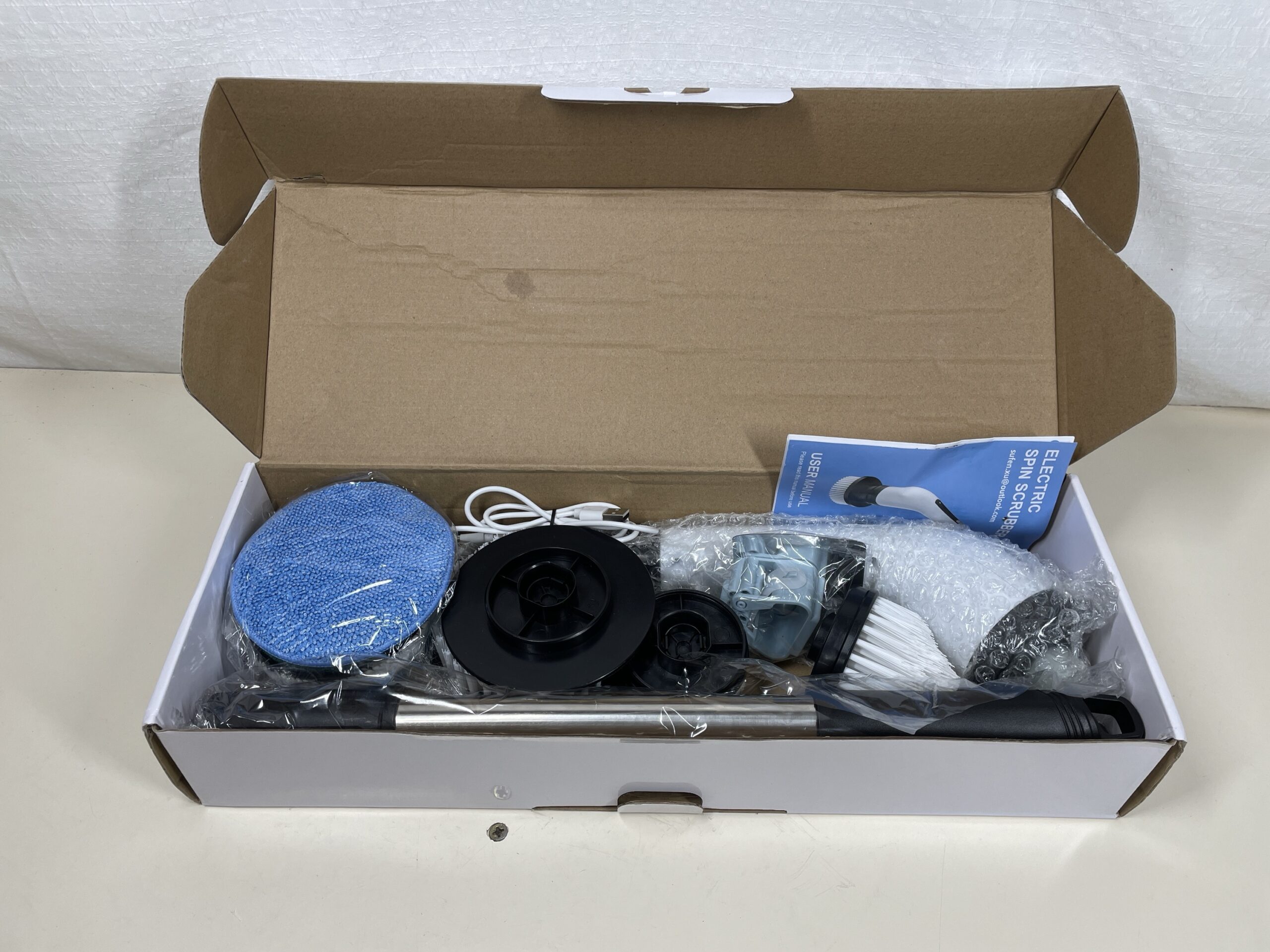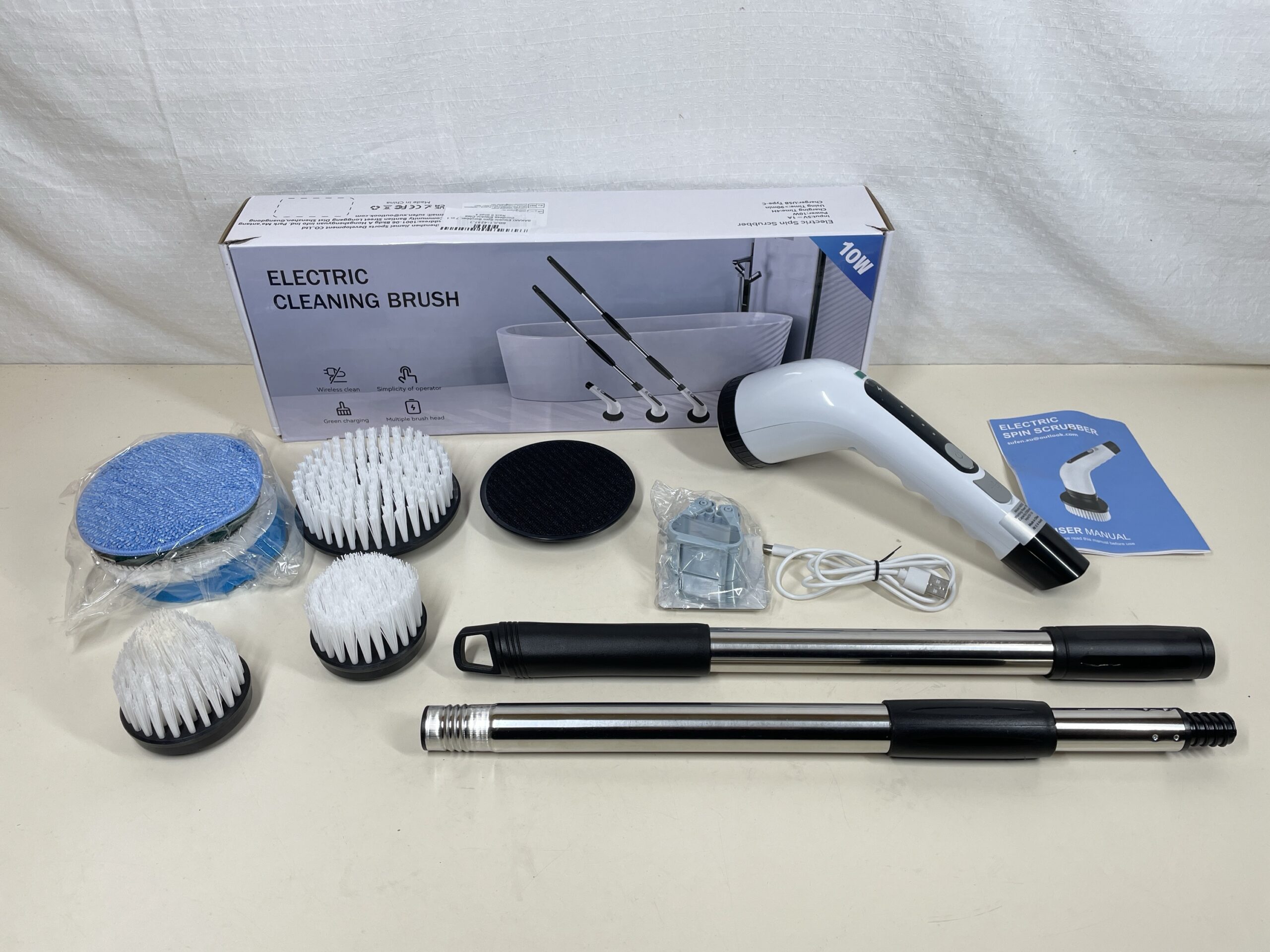 - 【Ideal Gift for Your Family】We are committed to providing better cleaning tools to help you and your family clean more easily, it is the best gift for your family or friends. If there is any problem with the electric cleaning brush, Our customer service team is at your service. (Package Contents: 1 x Electric Spin Scrubber, 1 x Extension Handle, 3 x Brush Head, 1 x Felt Tray, 4 x Fabric Brush, 1 x Hook, 1 x Type-C Charging Cable, 1 x User Manual)
