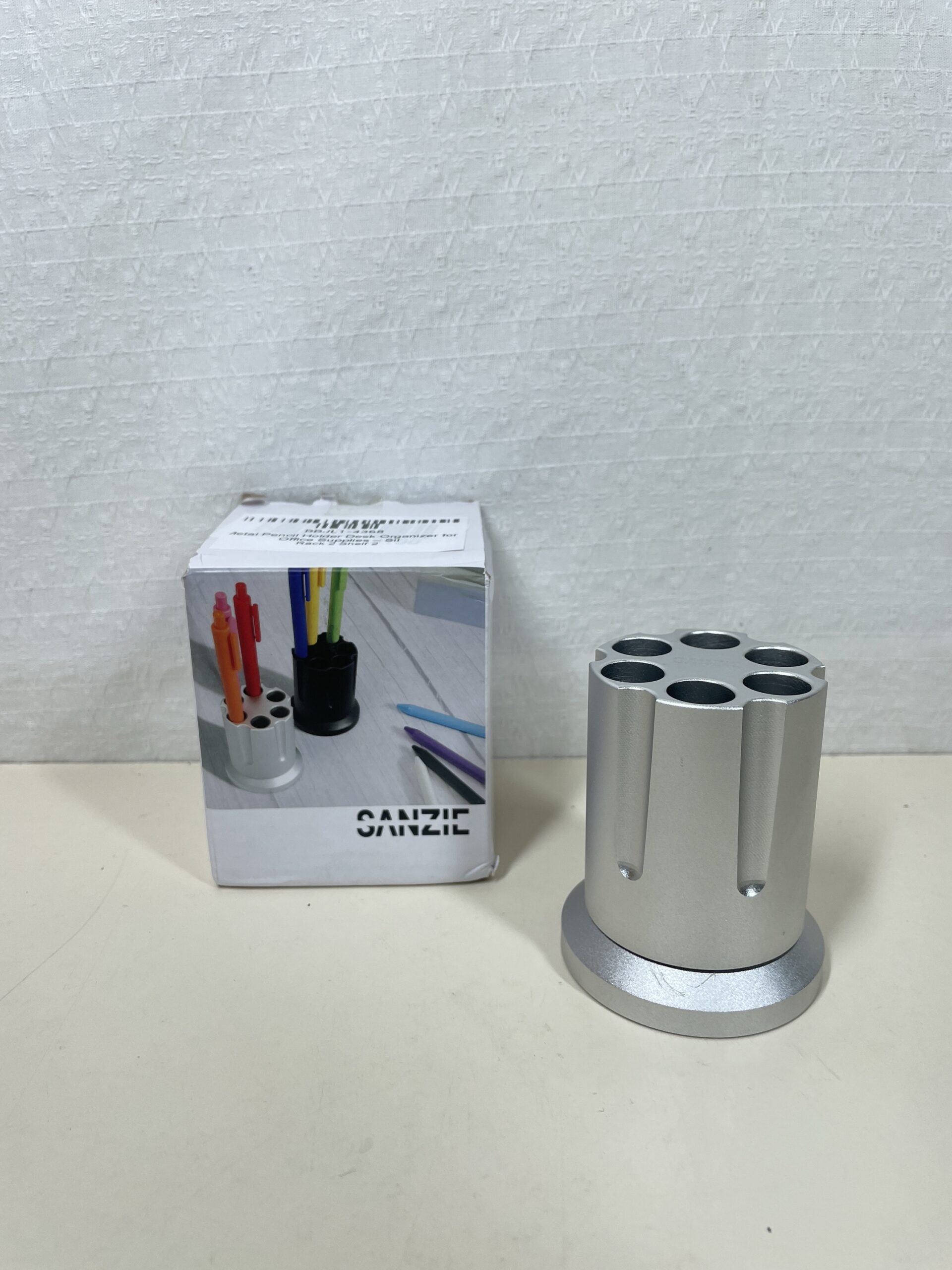 This SANZIE Rotating Metal Pen Holder is listed as new other as it has had it’s box opened and has a very minor cosmetic mark on the bases rim. Other than that the pen holder is in a fantastic condition, with no signs of previous use or actual damage. It rotates perfectly and has a completely clean base. Please see images.