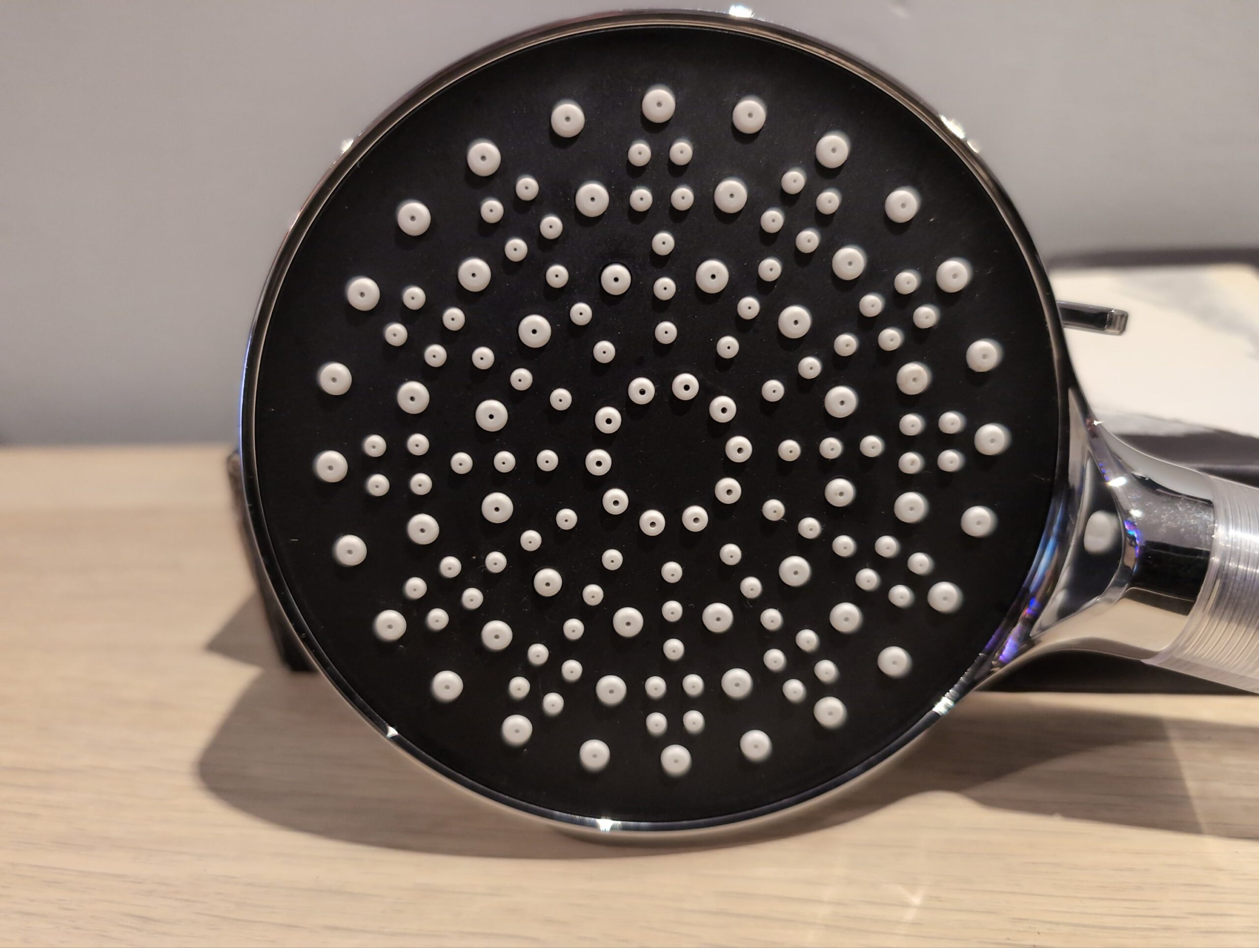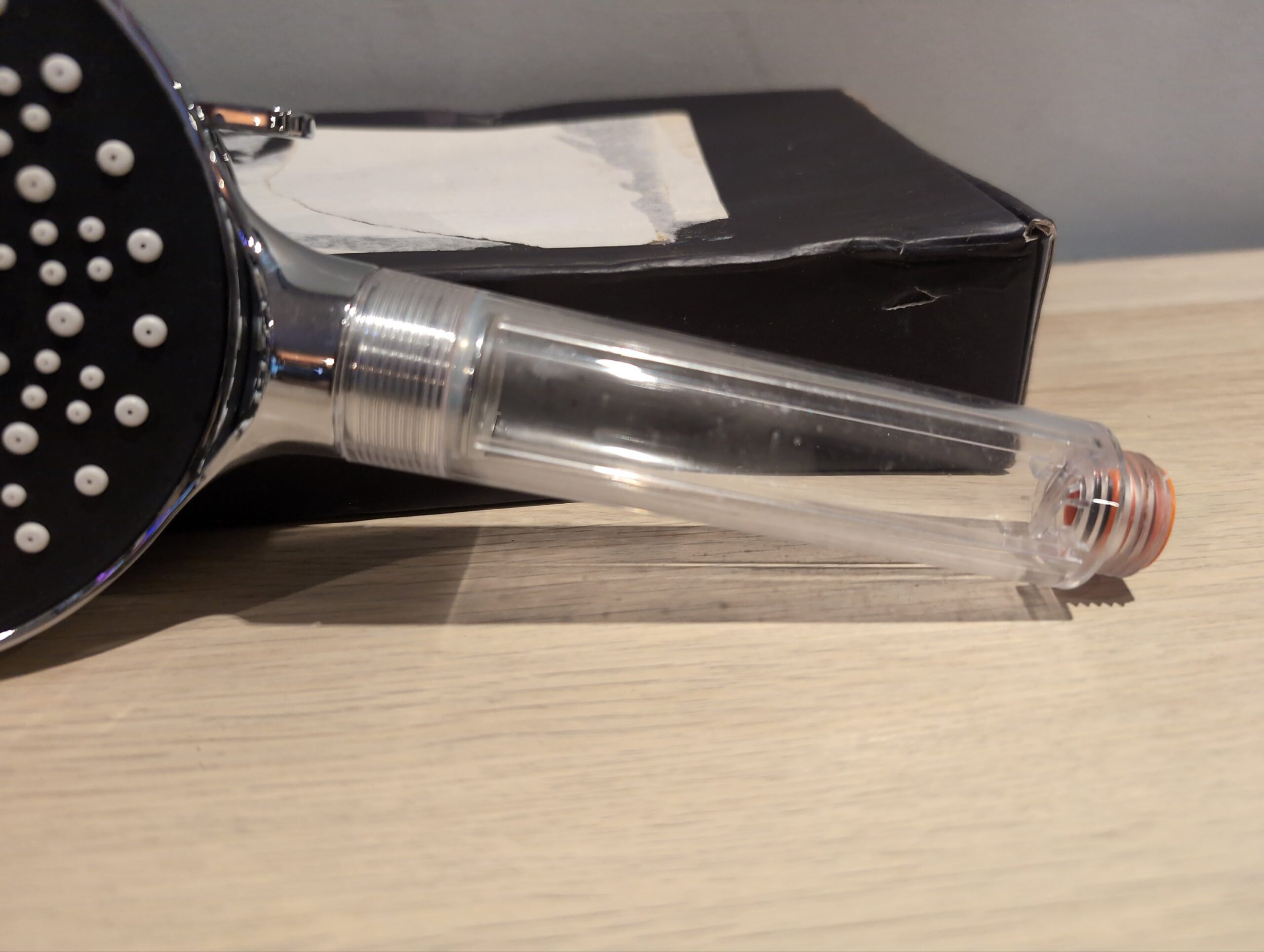 The showerhead is in good unused condition. The filter balls are still in their original bag.