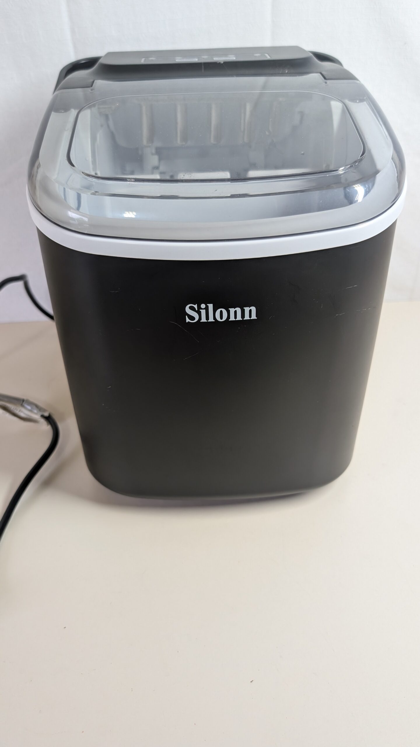 The ice maker has had some use with some scratches on the front. We’ve given it a test and it makes cubes. Will need another clean before use
