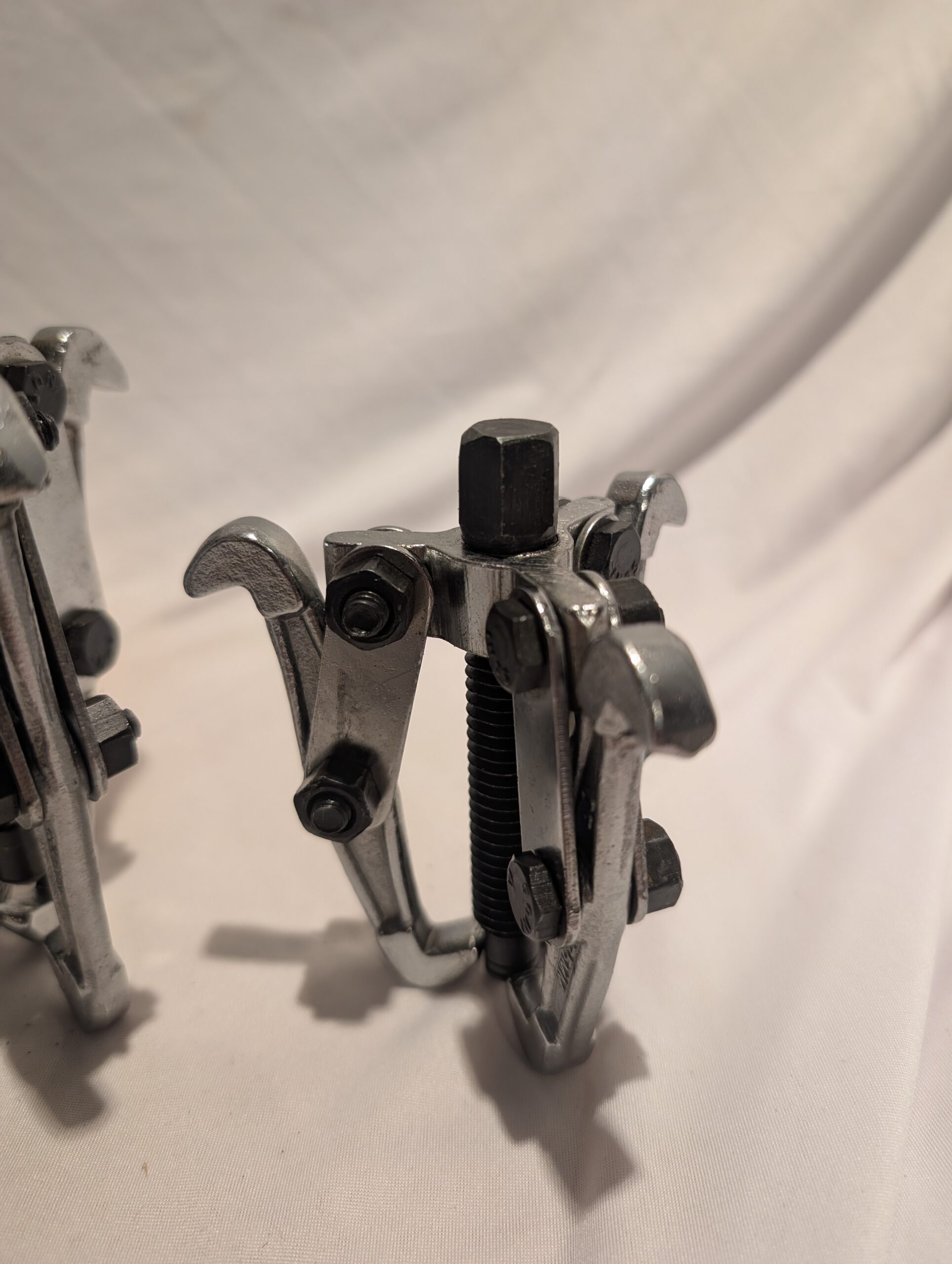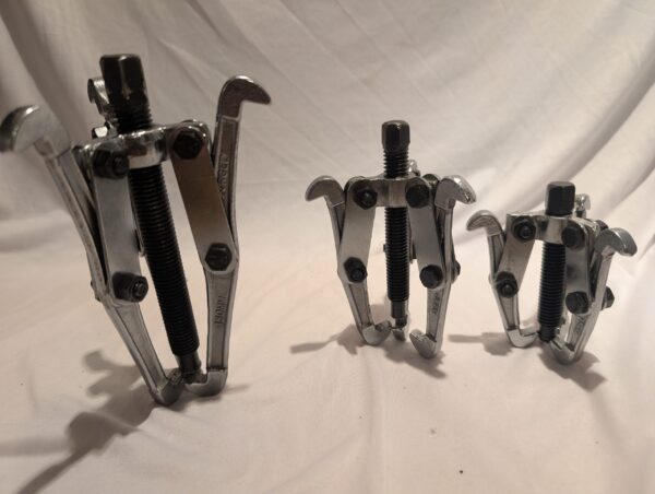 Drop forged & chrome plated. Heavy duty gear pullers in sizes 75mm, 100mm and 150mm. Reversible for internal or external use.