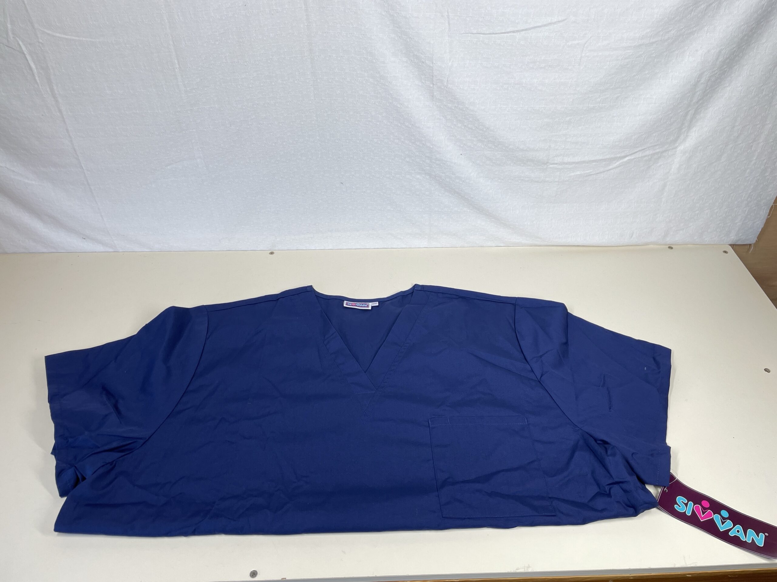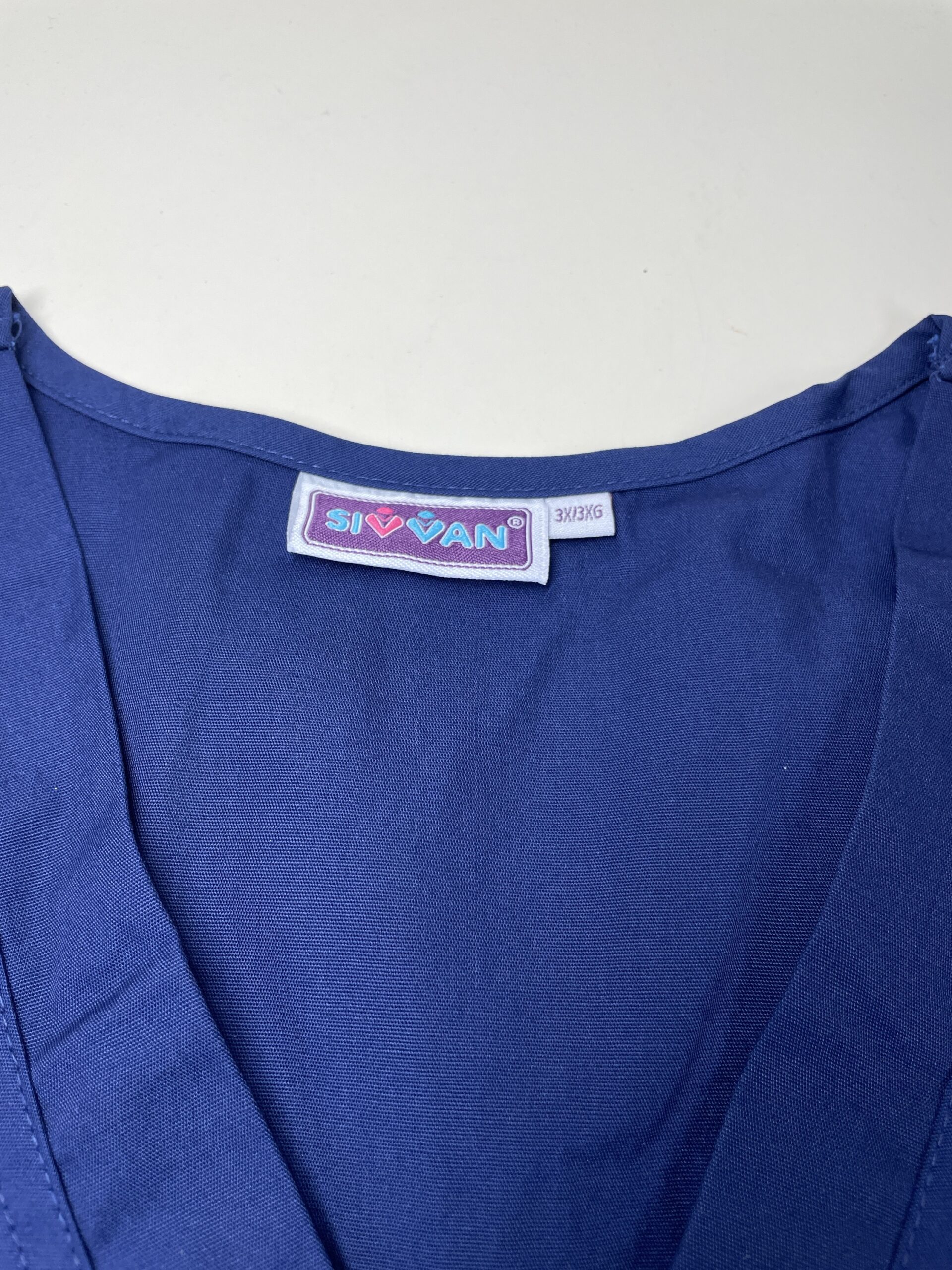 - TOP: V-neck scrub top, Set-in short sleeves, Center back length 28 ½” in Size M (1 Top)