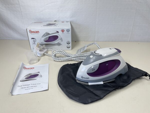 This Swan SI3070N Travel Iron is listed as new with tags as the box has been opened and has some minor damage, the travel iron itself is still in a fantastic condition, it’s tags still attached with no signs of previous use or damage at all. It has been tested with to ensure everything and we are pleased to say that everything is functioning perfectly. The user manual and the travel carry bag are both included. Please see images.