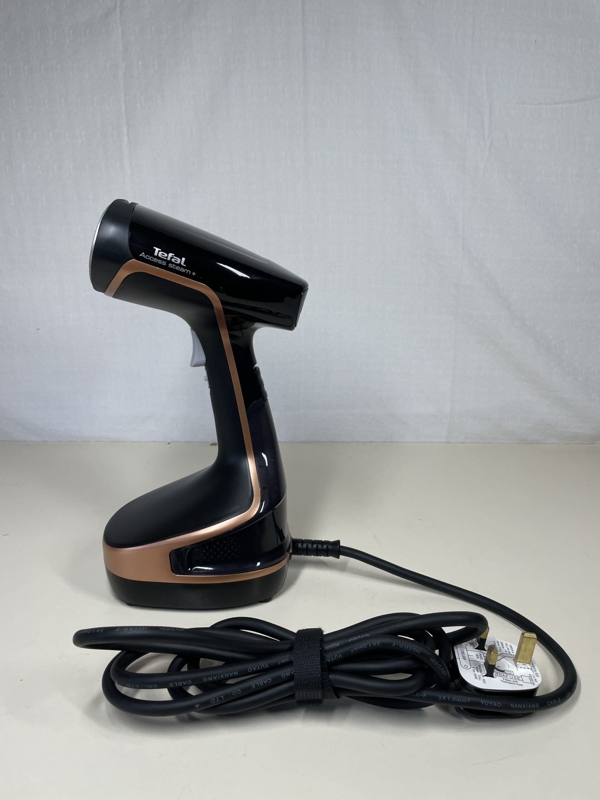 Tefal Access Steam+ Handheld Clothes Steamer, 1600W, 26 g/min Steam, No Ironing Board Needed, 2 Steam Levels, Sanitising Steam, Black & Rose Gold, DT8103