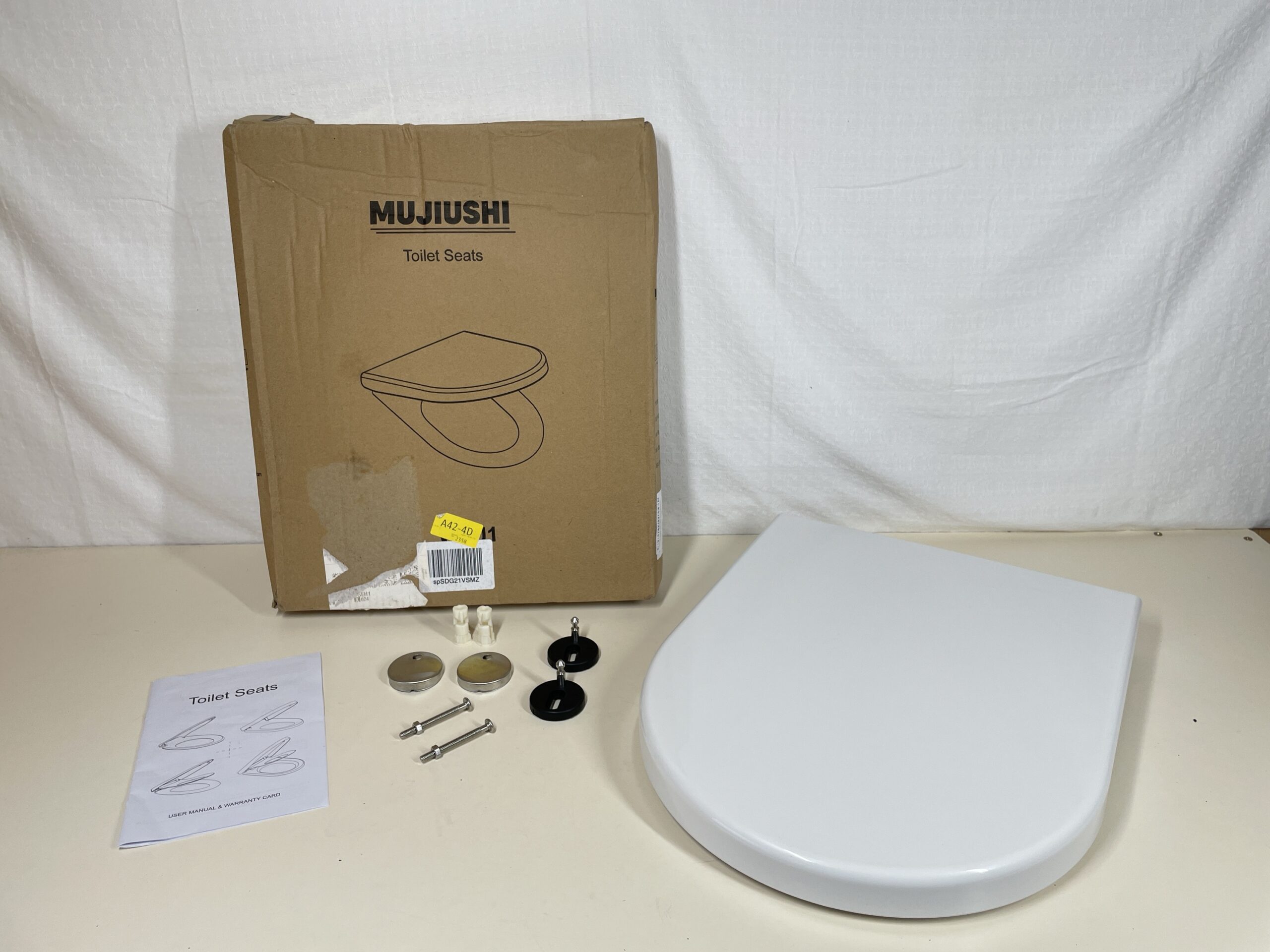 This MUJIUSHI D shape Soft Close Toilet Seat is listed as new other as the box has been opened and is very slightly damaged, but the toilet seat inside is in a pristine condition, with no signs of previous installation or damage. The accessories are all included and in a great condition. The user guide is also include with the kit. Please see images.