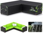 - [WATERPROOF UPGRADE] The new heavy-duty 420D Oxford fabric with PU coating has been upgraded from 8000 to 10000 water pressure resistance. Seams are reinforced with waterproof tape to keep your furniture dry. The UIRWAY L-shaped garden furniture cover also protects your furniture from rain, snow, dust, leaves, and scratches.