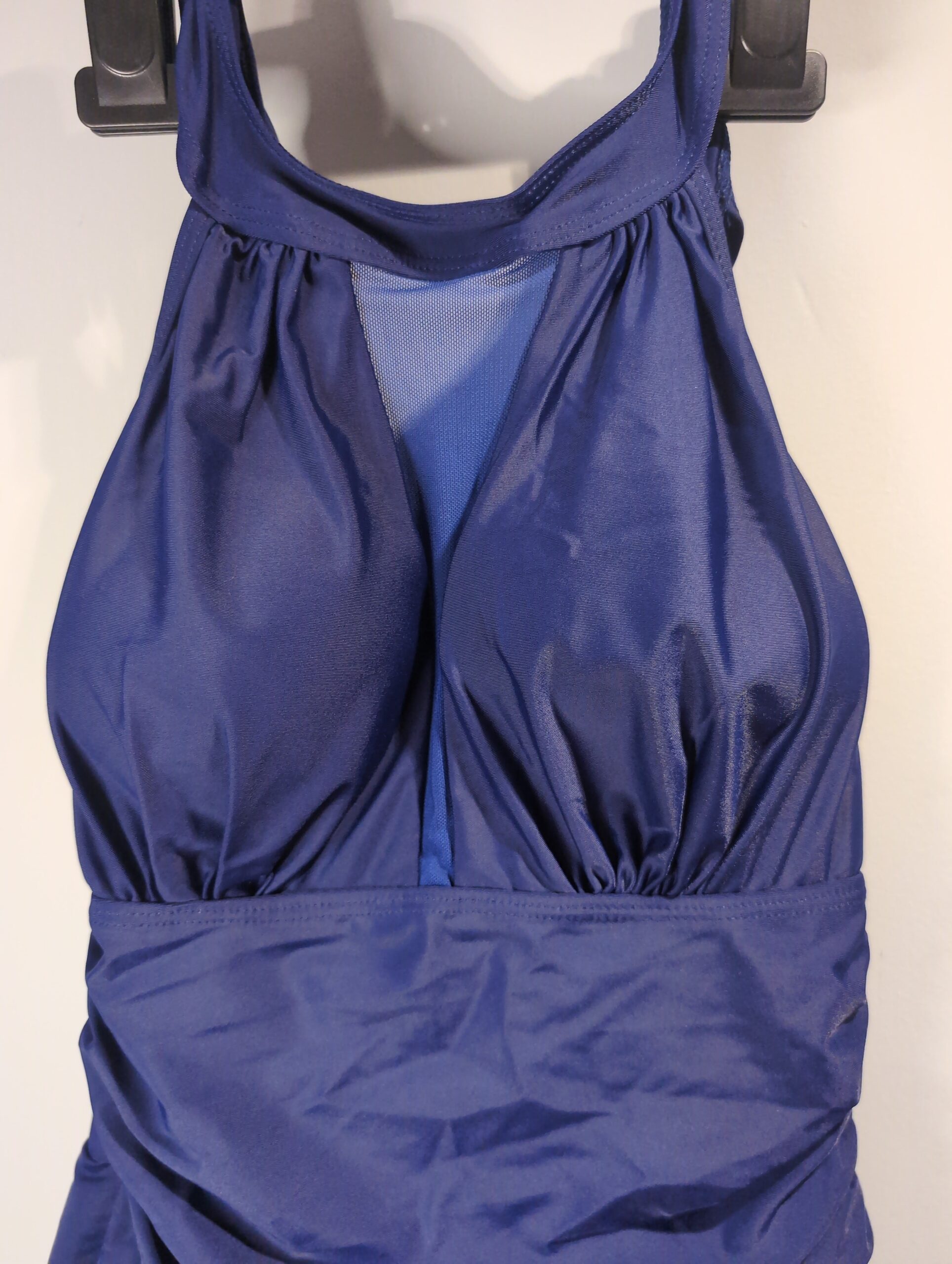 • Product Details: One-piece swimsuit/Mesh details/Tummy control ruched waist/Elegant high halter neck/Wirefree soft fixed bra for shape and support /Lightly lined for better fit and security.