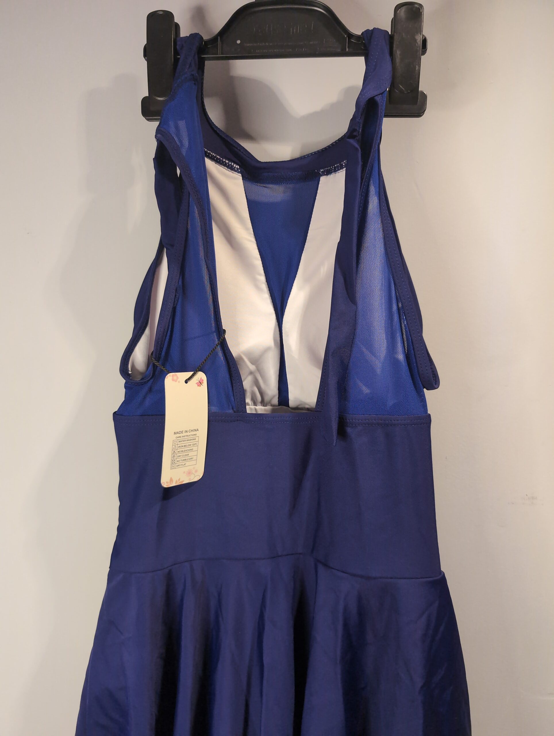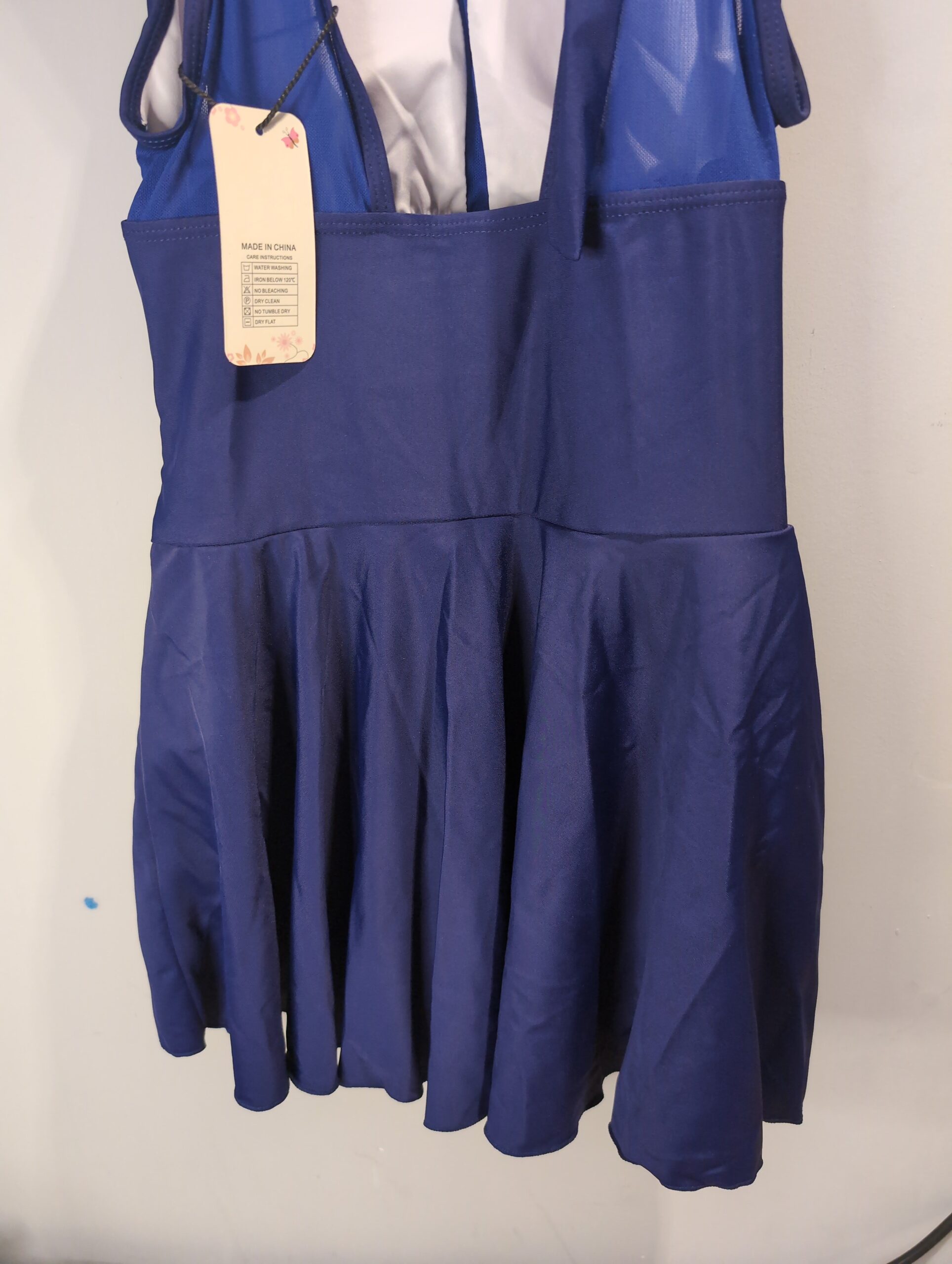 Vevarble Women Swimming Costume, Navy, Small, Mesh High Neck One Piece Swimdress Swimsuit Tummy Control Swimwear Skirt Bathing Suit(Navy-S)