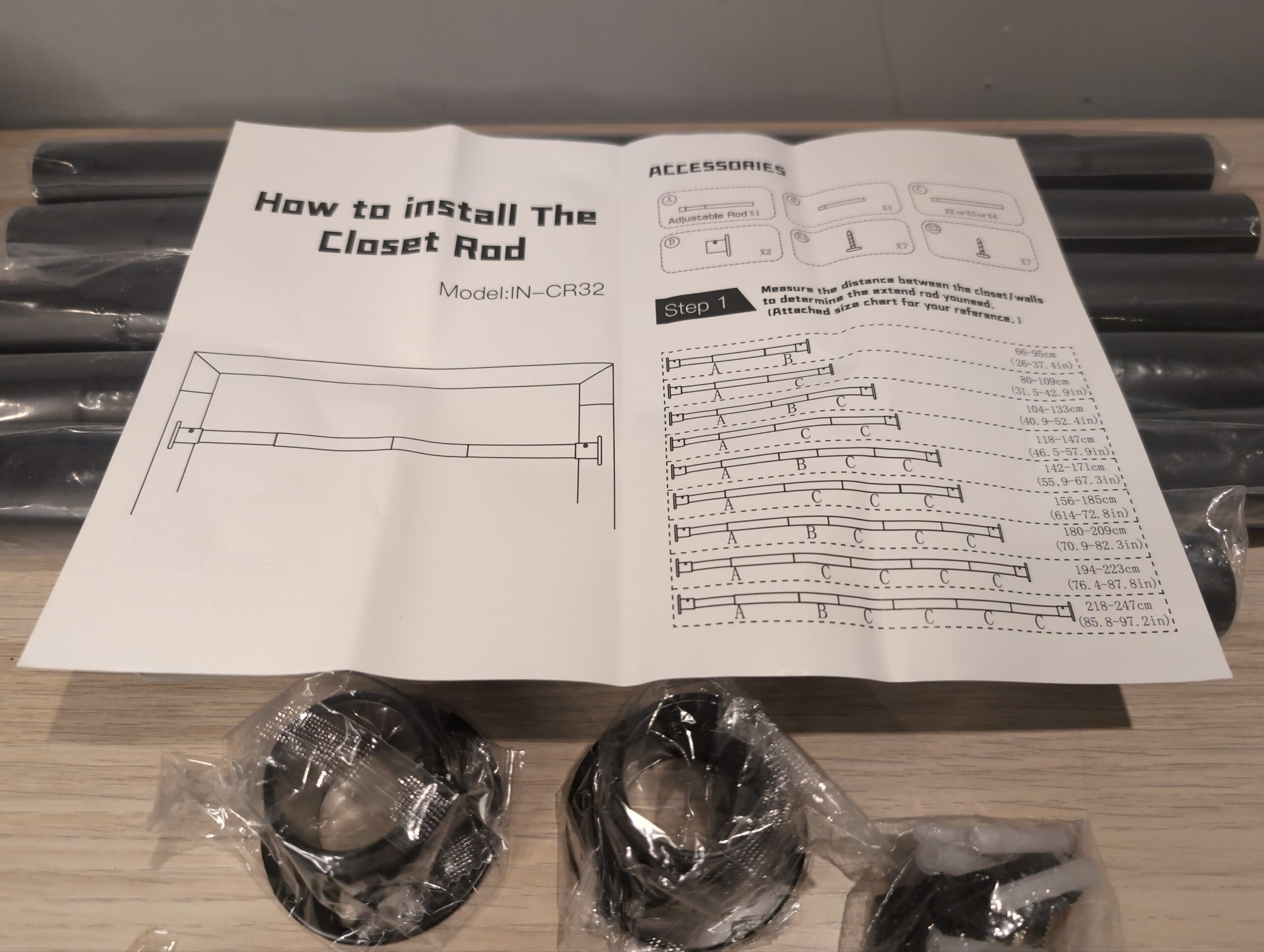 Why+choose+INSIMHEART+wardrobe+rail?+1.+Our+wardrobe+rod+is+designed+with+step-less+adjustment,+allowing+precise+calibration+according+to+the+wardrobe’s+size,+eliminating+the+need+for+manual+cutting,+without+any+size+gaps.+2.+Made+from+high-quality+carbon+steel+with+an+electroplated+surface+to+resist+rust+and+corrosion.+More+sturdy+and+durable.+3.Easy+to+Install,+Secure+the+brackets+with+screws,+connect+all+the+poles,+insert+the+metal+closet+rod+into+the+brackets,+and+then+tighten+the+rod+with+screws.+4.+Complete+range+of+hardware+accessories:+2pcs+stainless+steel+closet+rod+bracket,+short+screwx7,+long+screwx7,+wall+anchor+x7.+5.+The+closet+extender+hanging+rod+can+be+installed+both+indoors+and+outdoors.+Suitable+for+wooden+walls,+concrete+walls,+white+walls,+marble+walls,+etc.+6.Multi+Purpose+Closet+Bar:+Our+metal+wardrobe+rail+can+be+used+in+various+areas+of+your+home,+such+as+bedroom,+bathroom,+laundry+room,+kitchen,+patio,+balcony,+It+serves+as+a+laundry+room+hanger+rod,+room+divider+rod,+curtain+rod,+shower+curtain+rod,+window+lock+rod,+sliding+door+safety+rod,+or+in+an+RV.+7.+The+clothing+rod+can+be+mounted+at+any+height,+making+it+ideal+for+storing+clothes+at+a+lower+level,+which+is+useful+for+those+who+are+shorter+or+have+mobility+issues.+It+also+allows+for+more+efficient+use+of+closet+space+and+facilitates+more+organised+storage.+Features+Closet+rod+diameter:+3.3cm+load+capacity:+20kg+Size:+42.5-171cm(16.7-67.3in)+42.5-209cm(16.7-82.3in)+42.5-247cm(16.7-97.2in)+Color:+Matte+Black