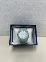 This Women’s green Silicone Sports Watch is listed as New without box or papers as the item comes with it’s box and shows no signs of previous use or damages, but has no papers and the tag has been removed. The watch has been set and runs without issue. Please see images.
