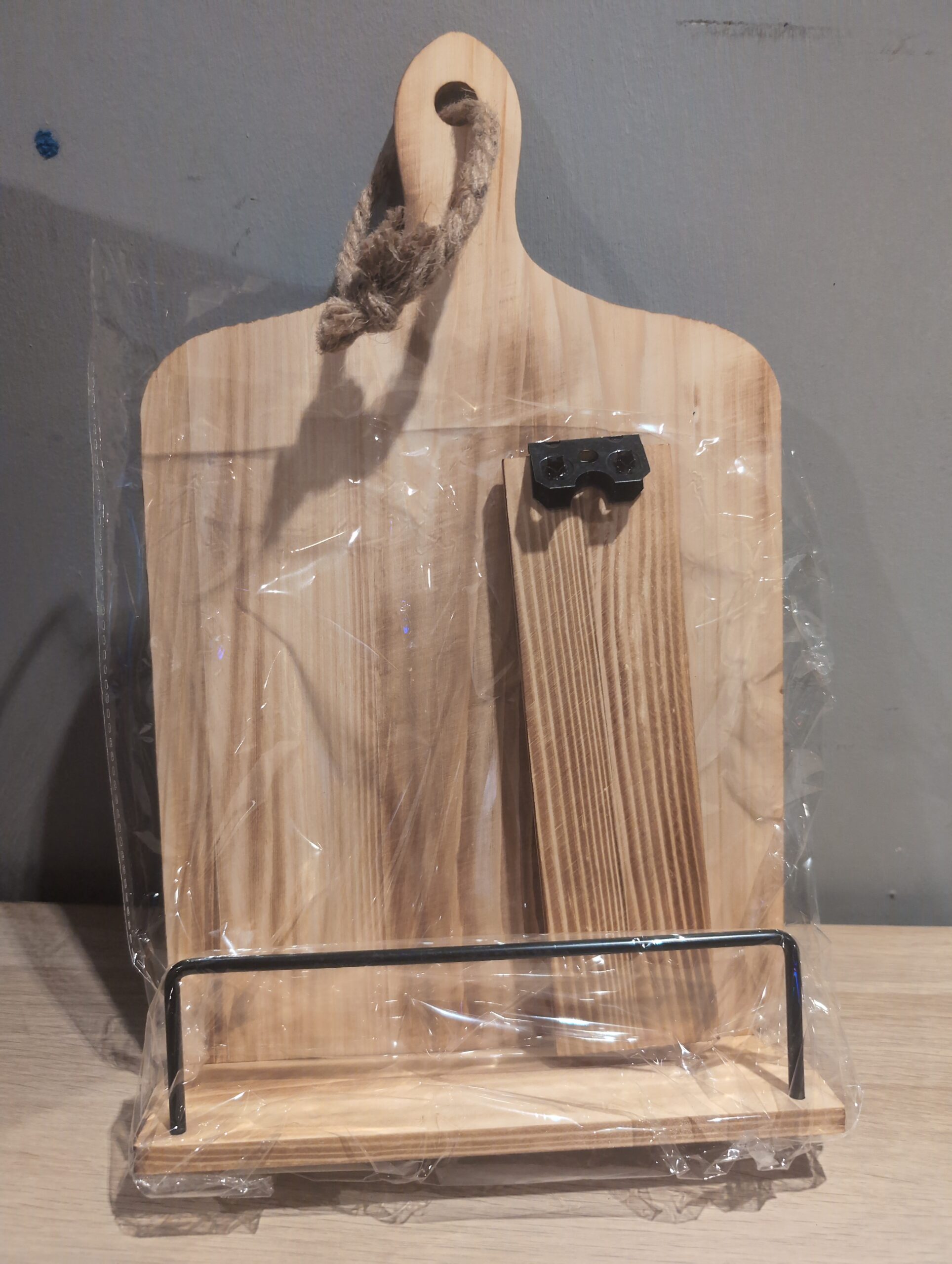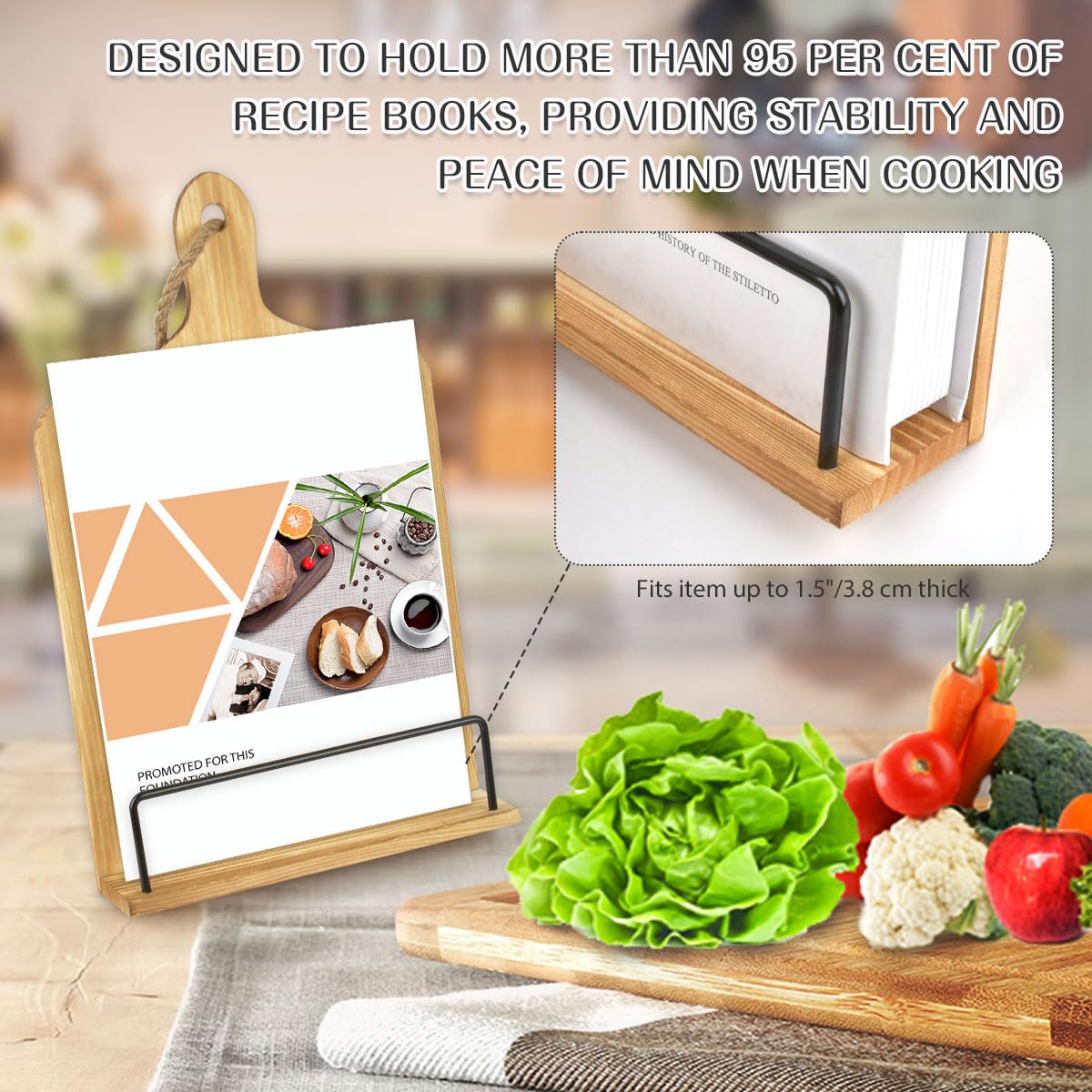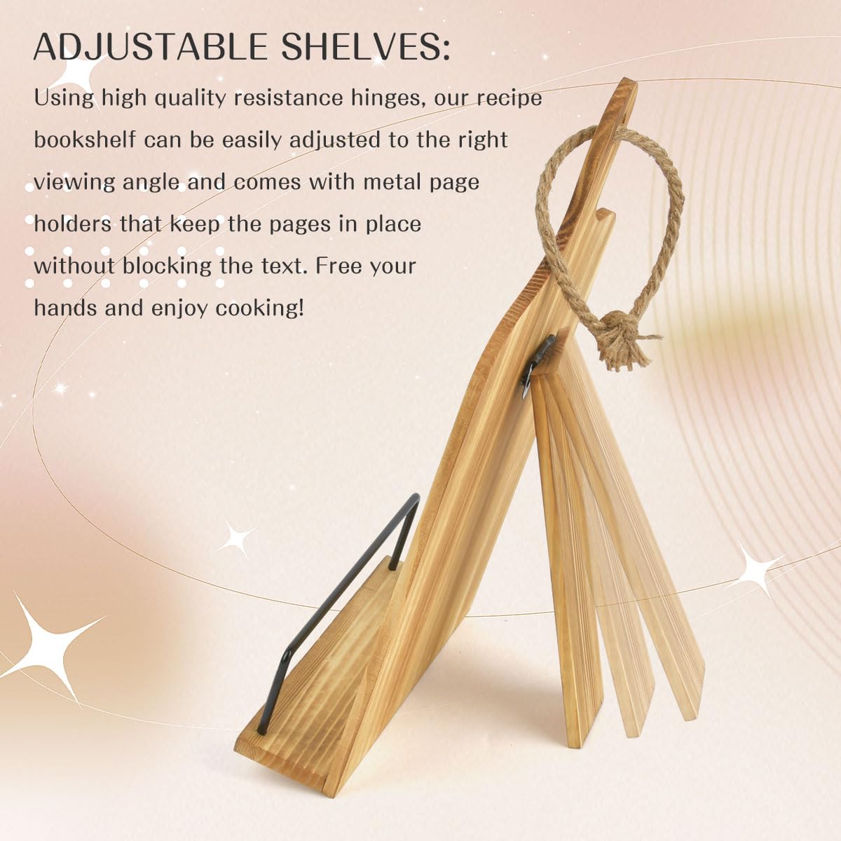 Adjustable wooden book rest ideal for holding cookbooks, recipes, and tablets whilst cooking. Compact design fits perfectly on kitchen worktops.