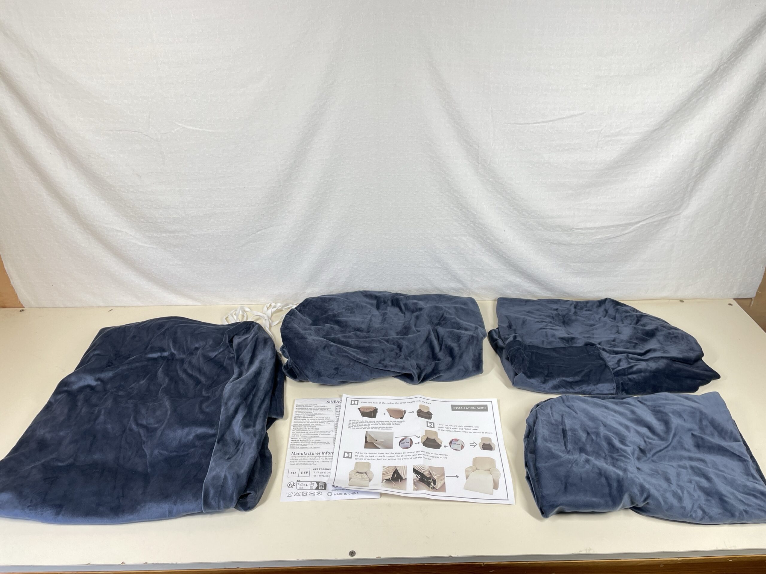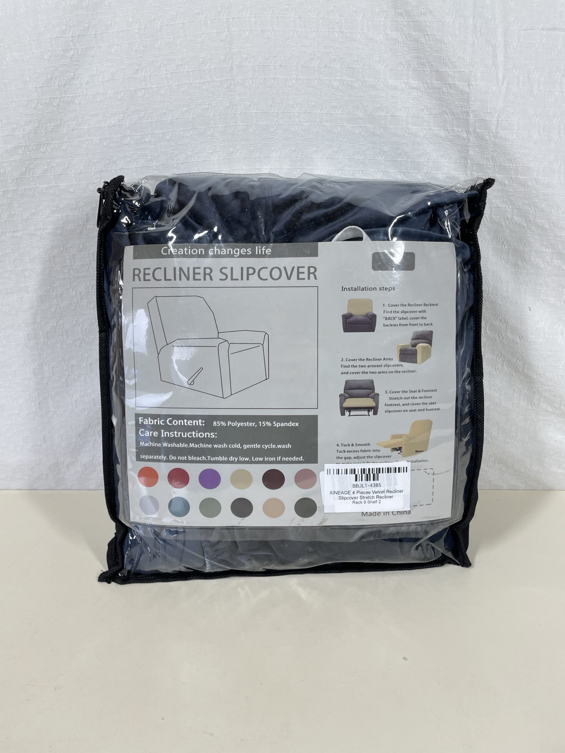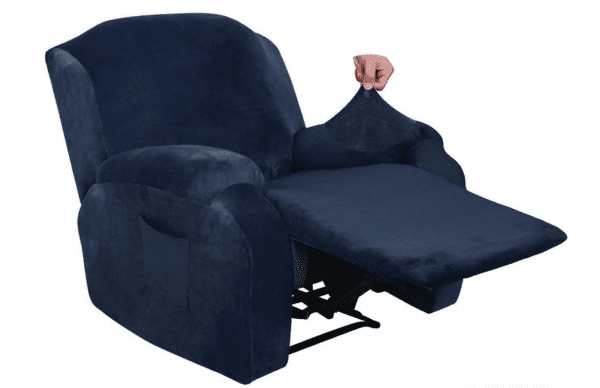 XINEAGE 4 Pieces Velvet Recliner Slipcover – Stretch to fit Recliner Chair Cover Side – Navy