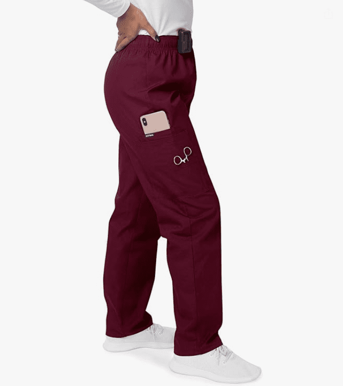 - Cargo pockets, cell phone pocket, and extra space pocket on right leg