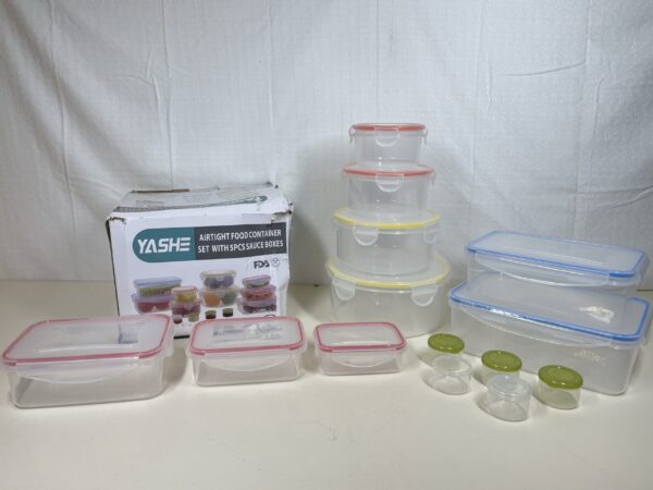 - PERFECT SIZE FOR EVERY OCCASION: A wide selection of container sizes suits every requirement makes these food storage containers ideal for preparing work meals, storing leftovers, picnics and more. 28PCS-5 x rectangular containers (1*0.24L, 1*0.5L, 1*1.0L, 1*1.5L, 1*2.5L), 4 x round containers (1*0.4L, 1*0.8L, 1*1.5L, 1*2.3L), 5 x round sauce containers(5*40ml)