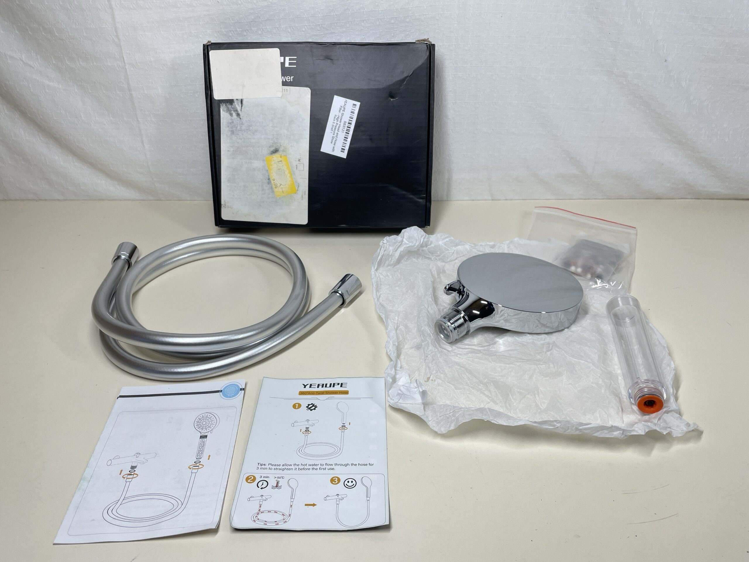 This YEAUPE Shower Head is listed as new other as the box has been opened but the kit inside shows no signs of previous use or damage. The filter beads are included and in an unused state. All parts are included and in a great condition. The user guide is included. Please see images.
