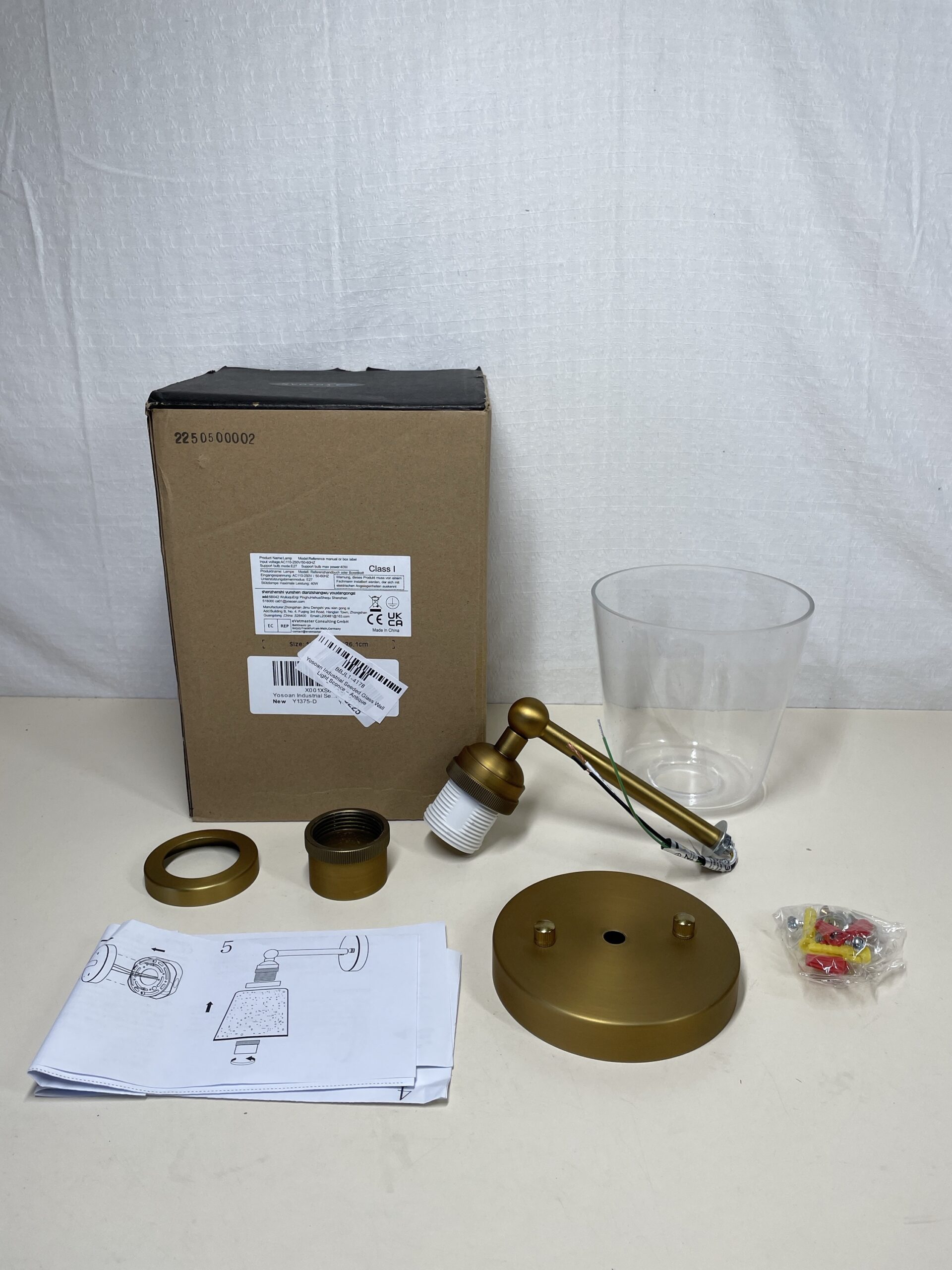 This Yosoan Industrial Seeded Glass Wall Light Sconce is listed as new other as the packaging has been opened, but the light kit inside is in a fantastic condition, showing no signs of previous installation or damage. All fitting parts are included and in a pristine condition, still sealed inside of their original protective bag. The user manuals are also included. Please see images.